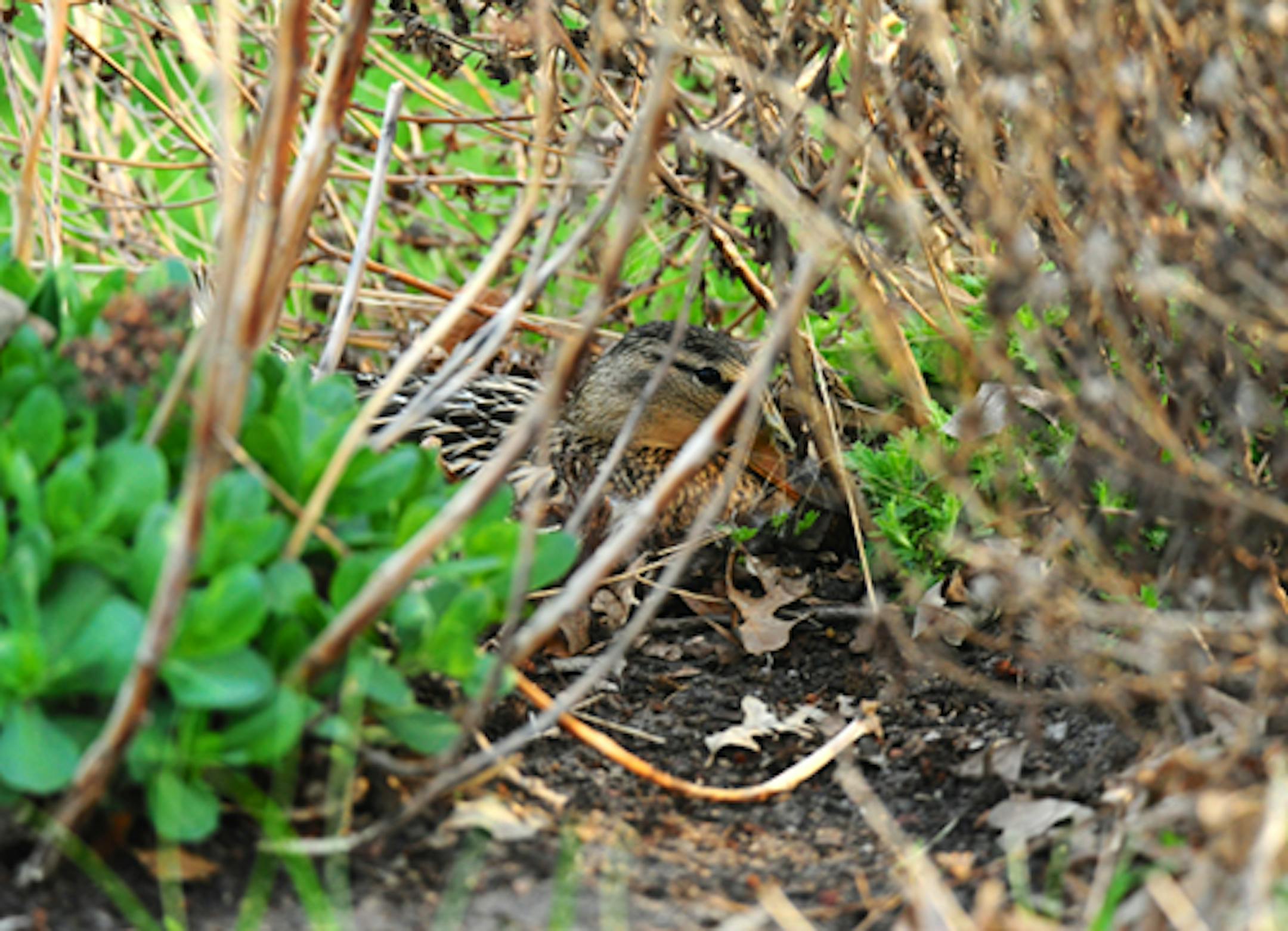This hen Mallard has hidden her nest well in this bit of backyard garden.