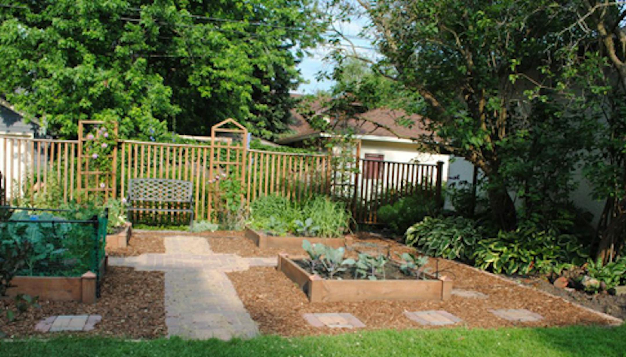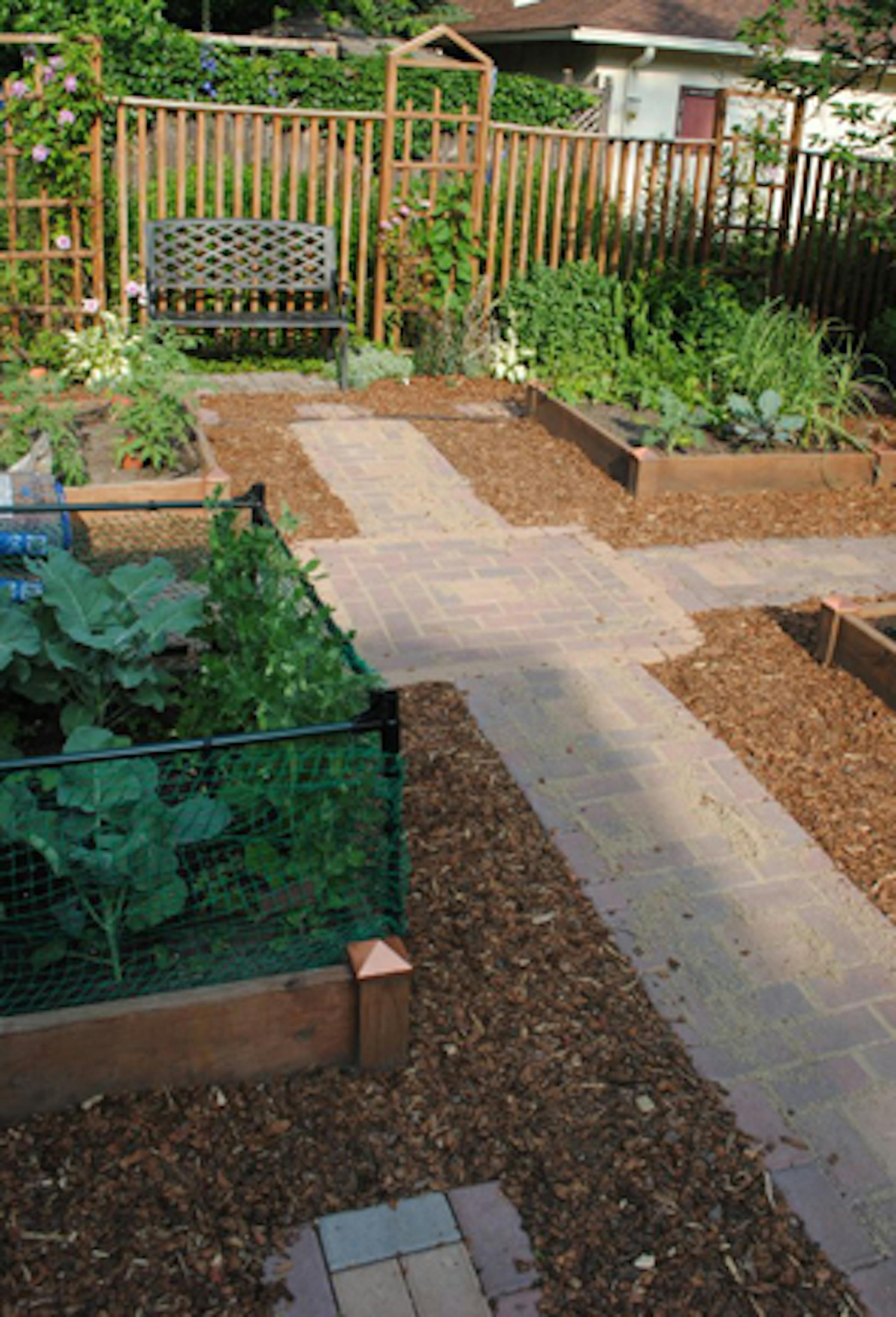 It started with the vague idea that it would be nice to have some sort of pathway around our raised beds instead of the half-heartedly growing grass. It would give us a place to work from in wet weather, and eliminate mowing and hand trimming. Plus, it might make the area look, well, more intentional.