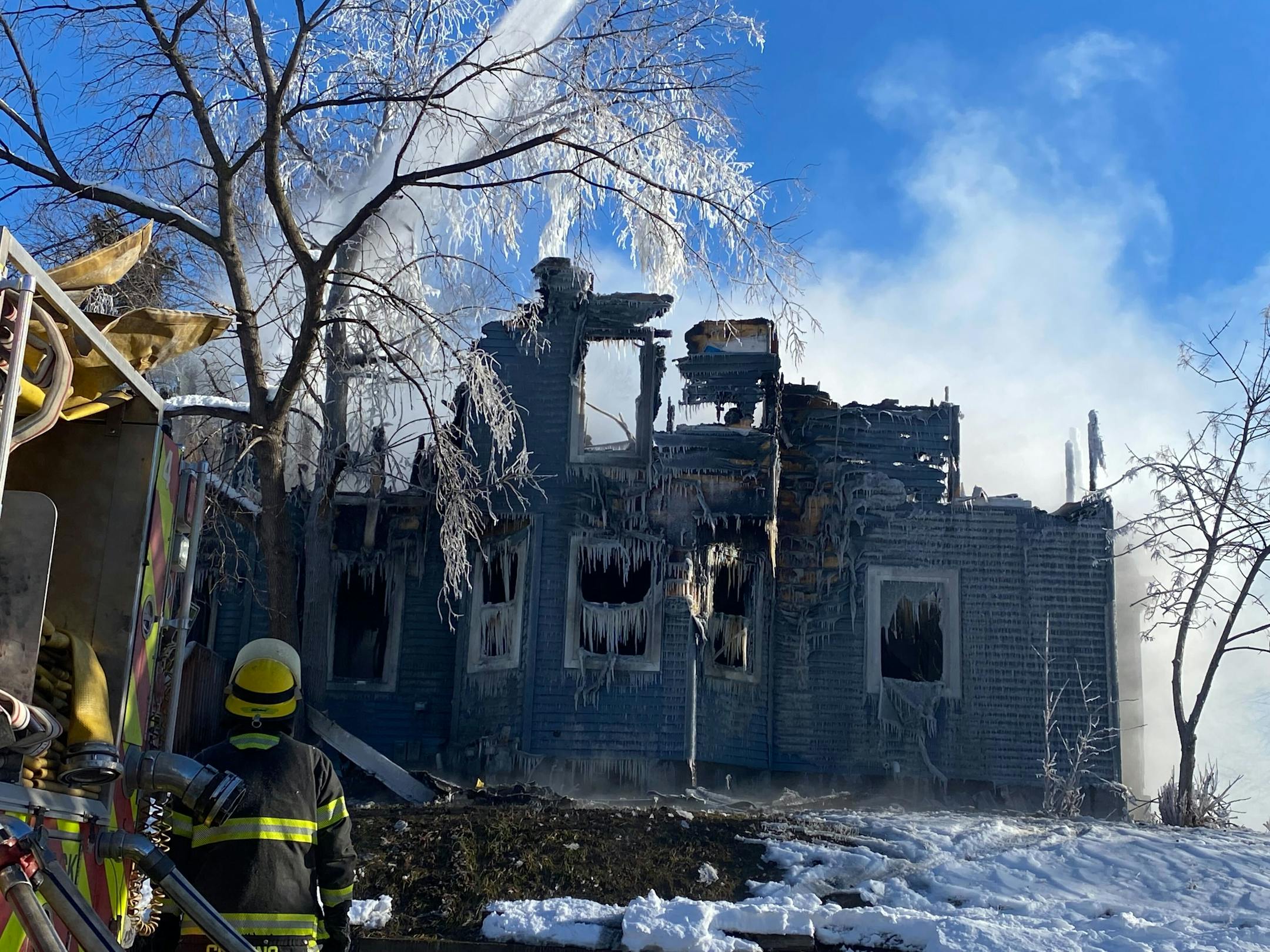 That cold caused problems for firefighters, Rucker said. Water flowing from their hoses froze. Ice and snow made it hard for crews to gain footing and douse flames.