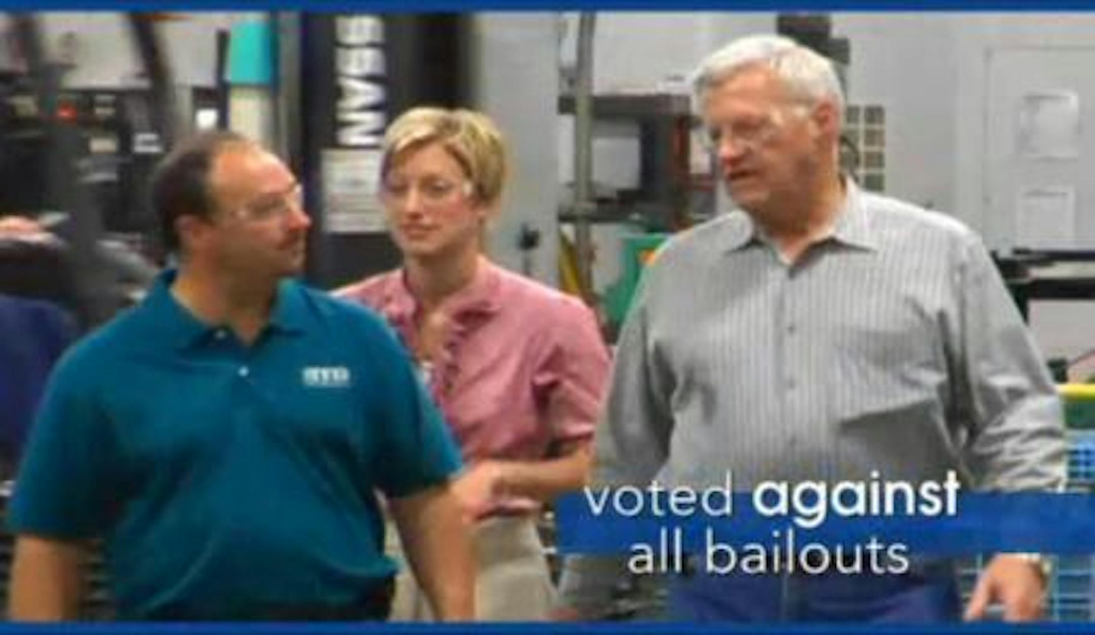 "While Washington argues, Collin Peterson quietly gets things done," an announcer says. "Collin's cracked down on overspending, voting against the Wall Street bailout, the auto bailout and the stimulus bill. And as chairman of the Agriculture Committee, Collin did what no other chair did: He cut spending and reduced the deficit while improving the farm economy. And he did it the Minnesota way, working with Democrats and Republicans. Listening, understanding and getting things done. That's not Washington. It's just our congressman, Collin Peterson."