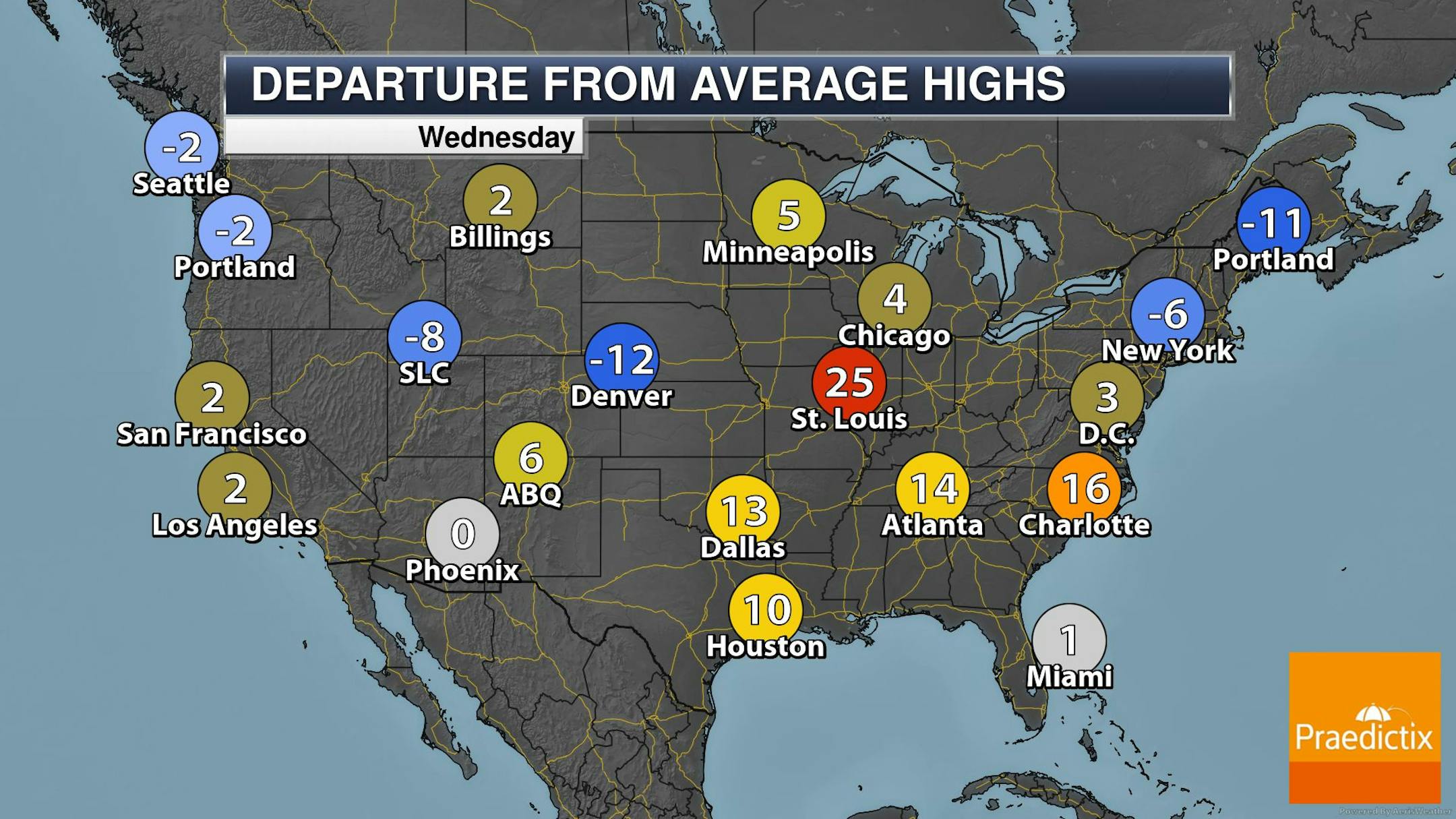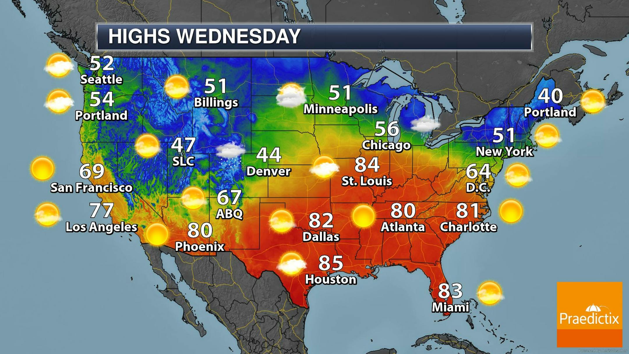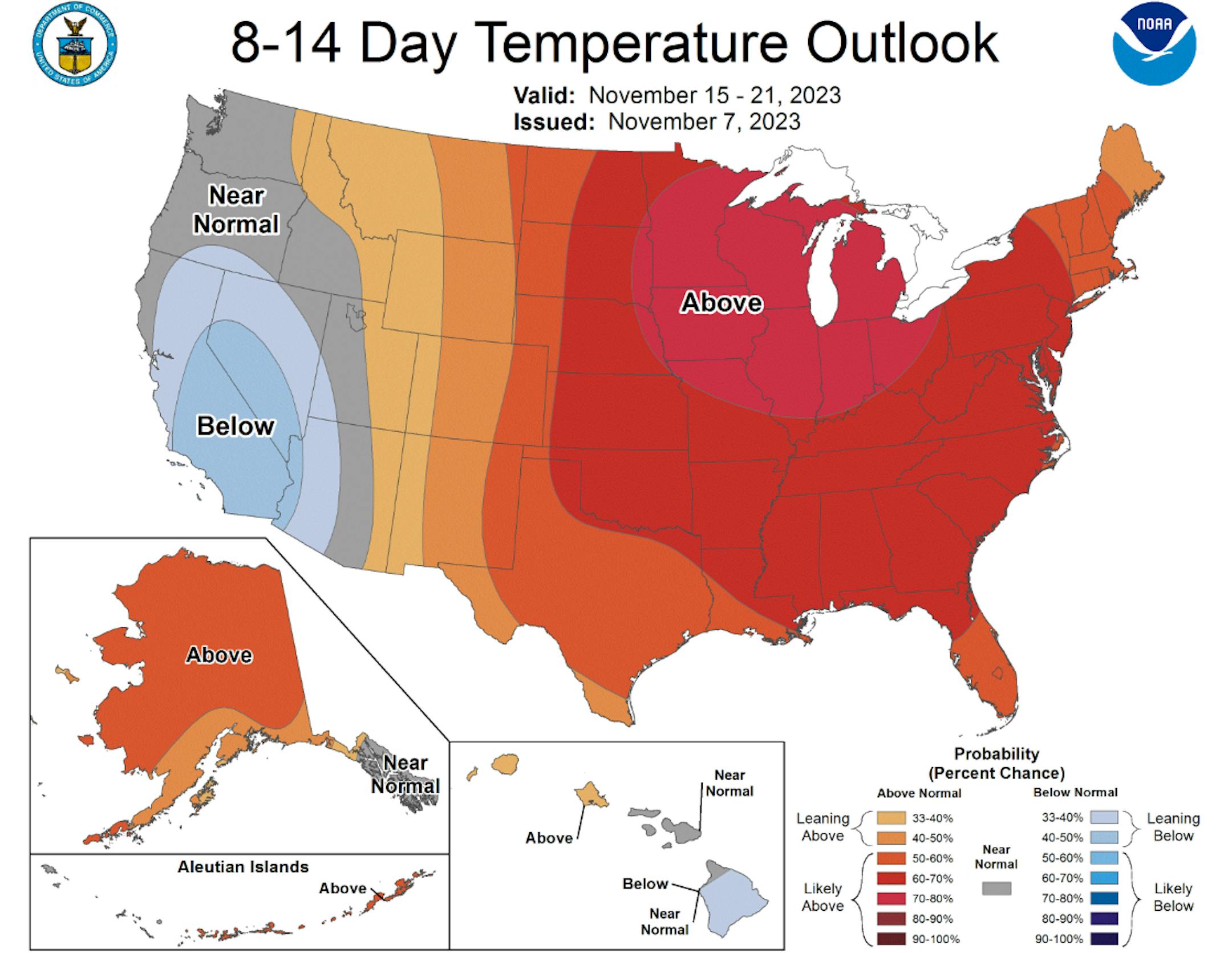 The weather outlook for the Twin Cities on Wednesday, November 8th will still be very warm for this time of the year with readings warming into the lower 50s. This will be nearly +5F to +10F above average for this time of the year. Skies will be cloudier throughout much of the day as well.