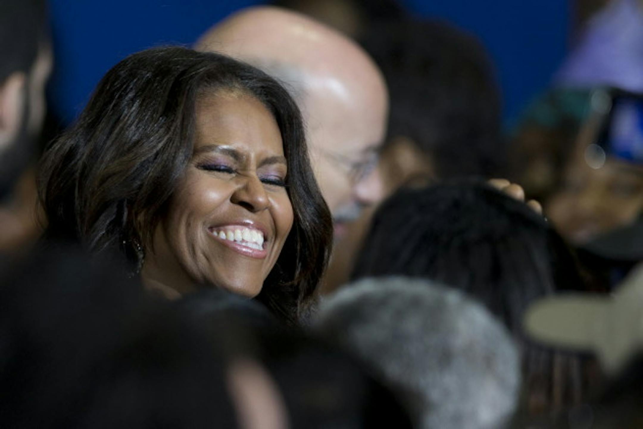 Photo: First lady Michelle Obama meets with audience members as she campaigns for Pennsylvania Democratic gubernatorial candidate Tom Wolf, center right, Wednesday, Oct. 15, 2014, at the Dorothy Emanuel Recreation Center in Philadelphia. (AP Photo/Matt Rourke)