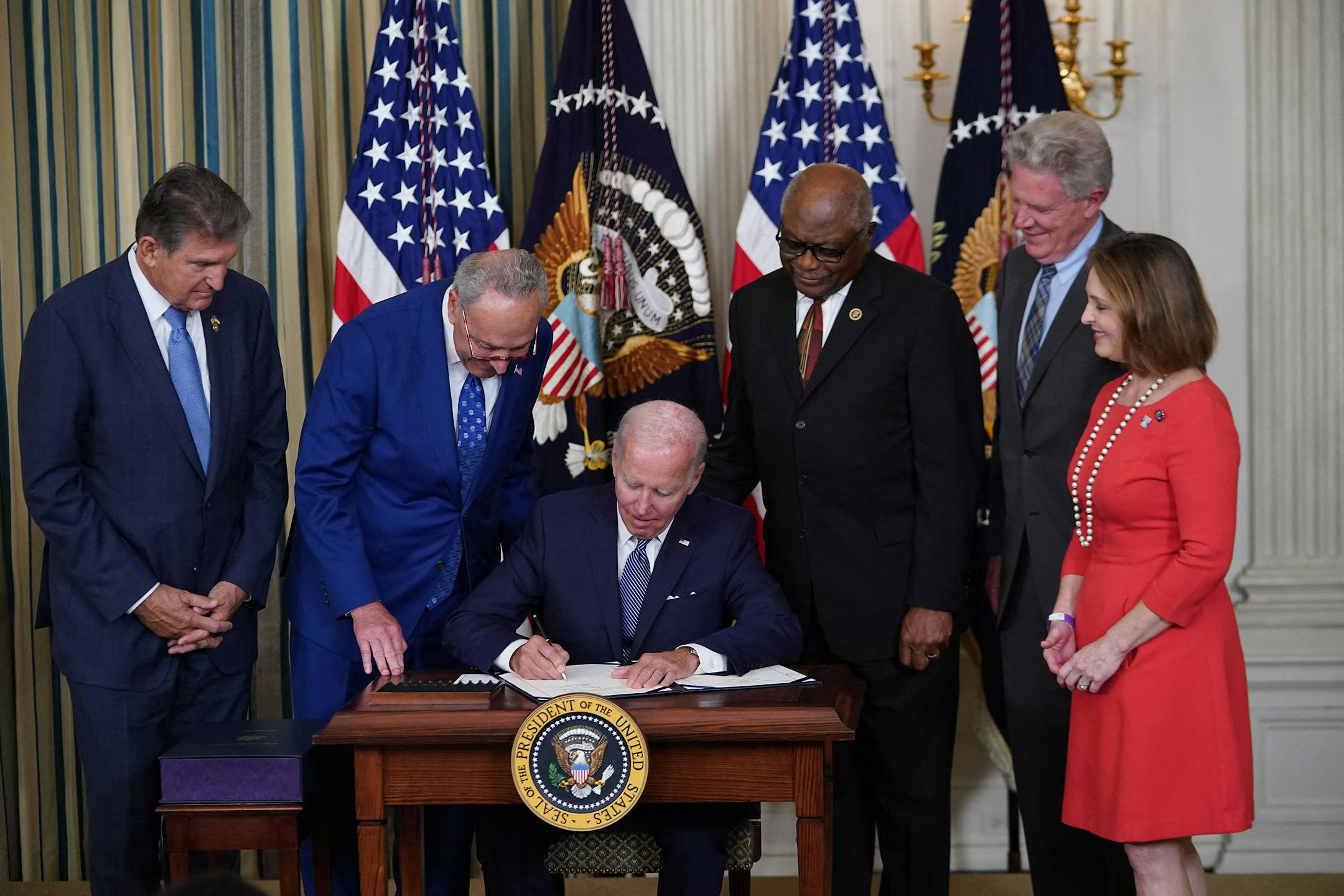 One year ago, President Joe Biden signed the Inflation Reduction Act, the nation's most significant action yet to combat climate change. The law dedicated $369 billion to boost renewable energy production and manufacturing, help homeowners install rooftop solar panels, switch to efficient electric appliances, drive up sales of electric vehicles and get the U.S. closer to meeting Biden's goal of cutting greenhouse gas pollution in half by 2030.