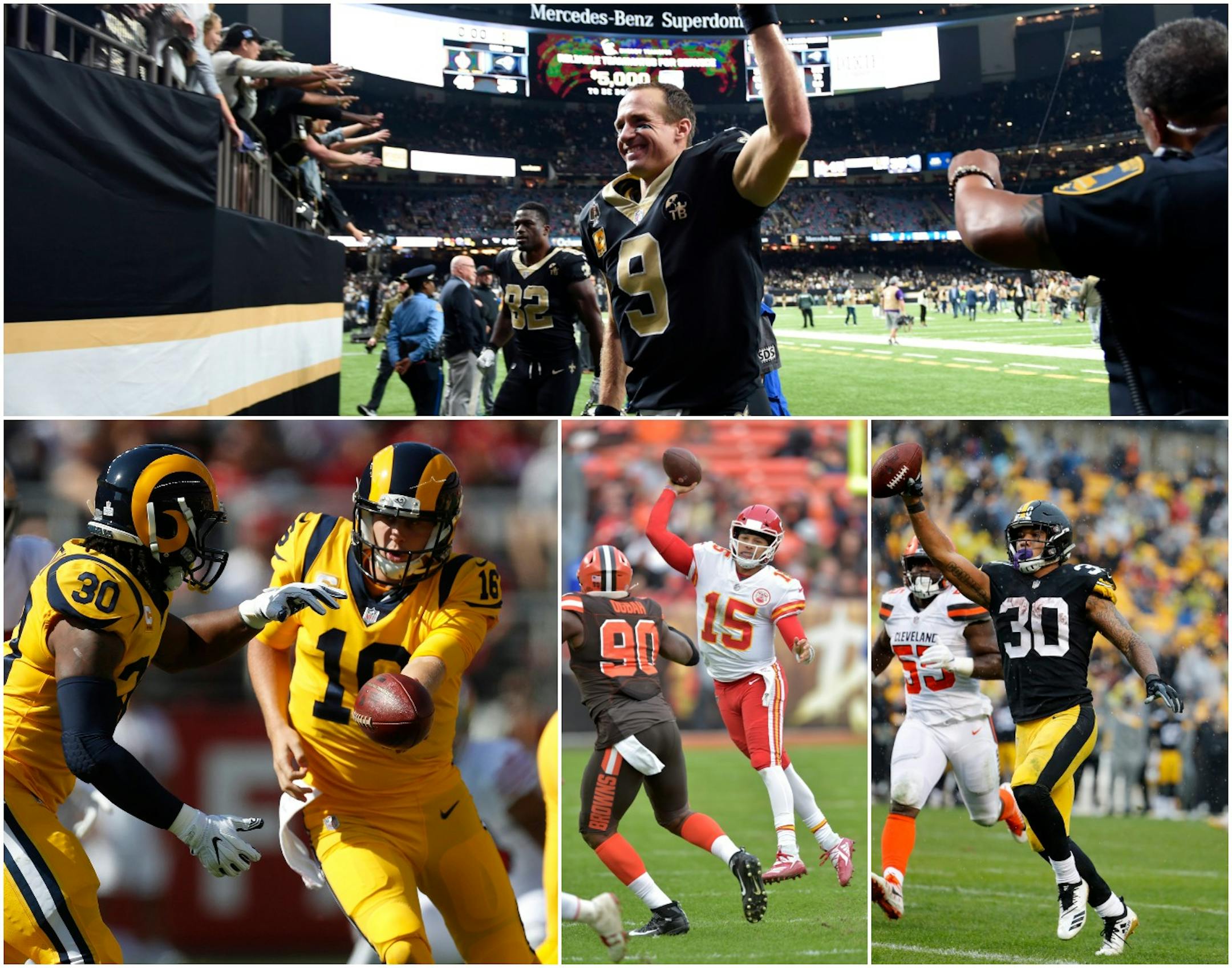 Leads in passer rating (120.6), touchdown-to-interception ratio (18-1), completion percentage (.763), current winning streak (seven) and took down the Rams.