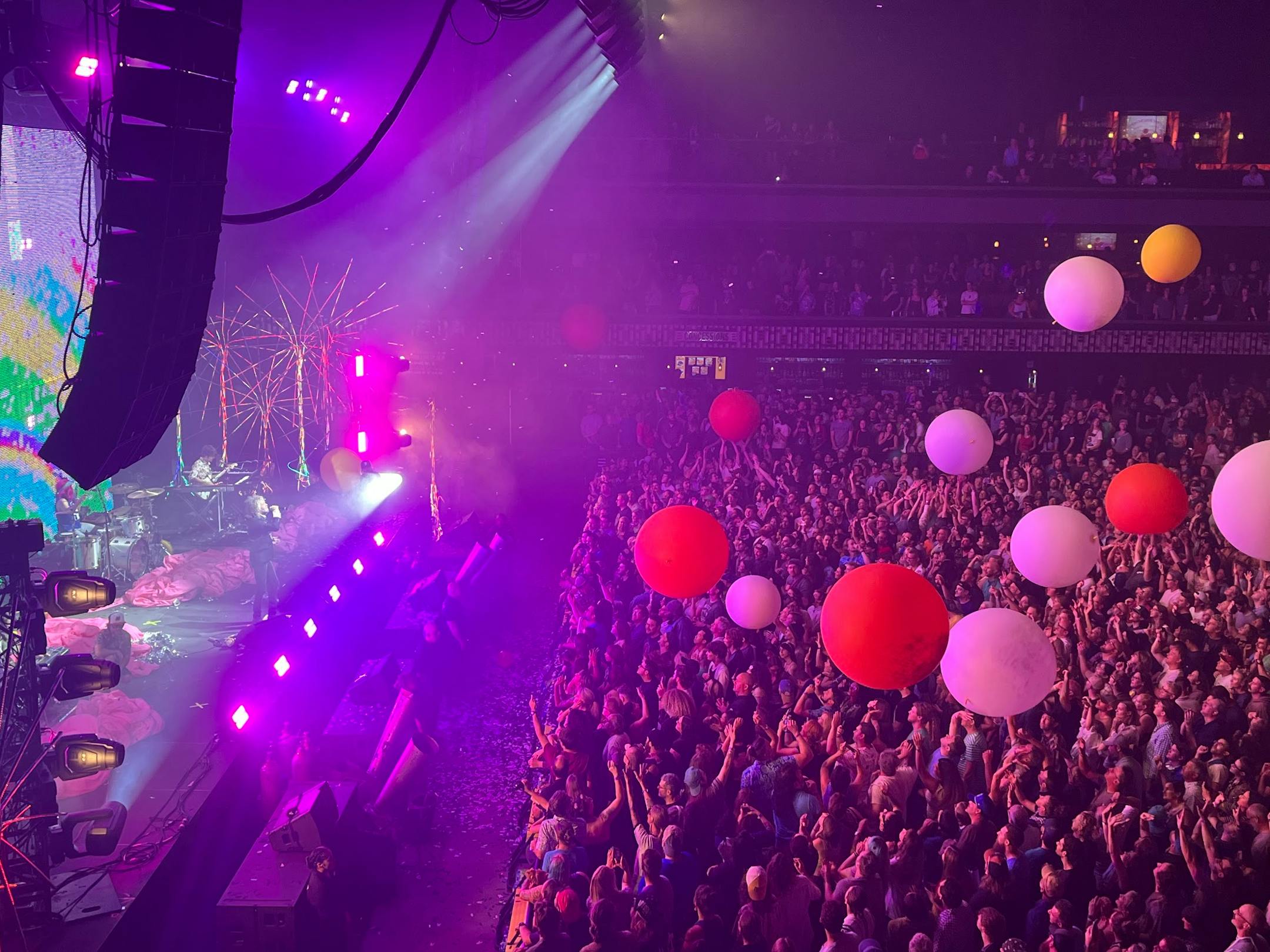 As usual, Coyne and his Oklahoman acid-punk band put on a dizzyingly colorful performance that looked like something out of the kids’ TV show “Yo Gabba Gabba.” They blew up towering, inflatable pink robots right at the start of their 80-minute set for “Yoshimi Battles the Pink Robots, Pts. 1 and 2” and then proceeded to blow off an arsenal of confetti in the third song, “Turn it On.” Later, dancers in eyeball costumes joined them during “The Yeah Yeah Yeah Song.”