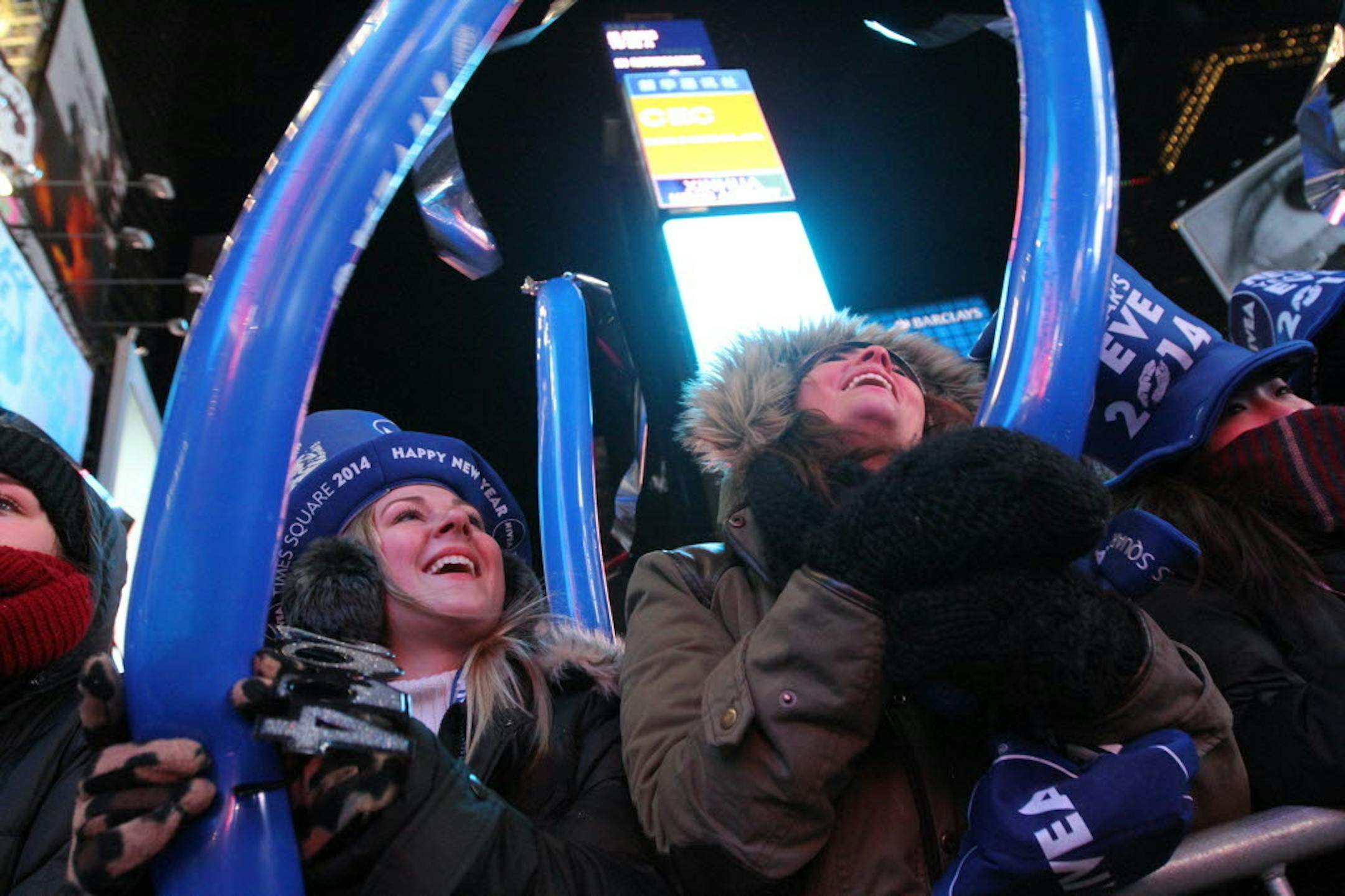 NEW YORK — Crowds jammed Times Square on Tuesday to ring in 2014, braving bone-chilling cold and ultra-tight security for the chance to see Miley Cyrus, a final countdown from a U.S. Supreme Court justice and the drop of the shimmering crystal ball.