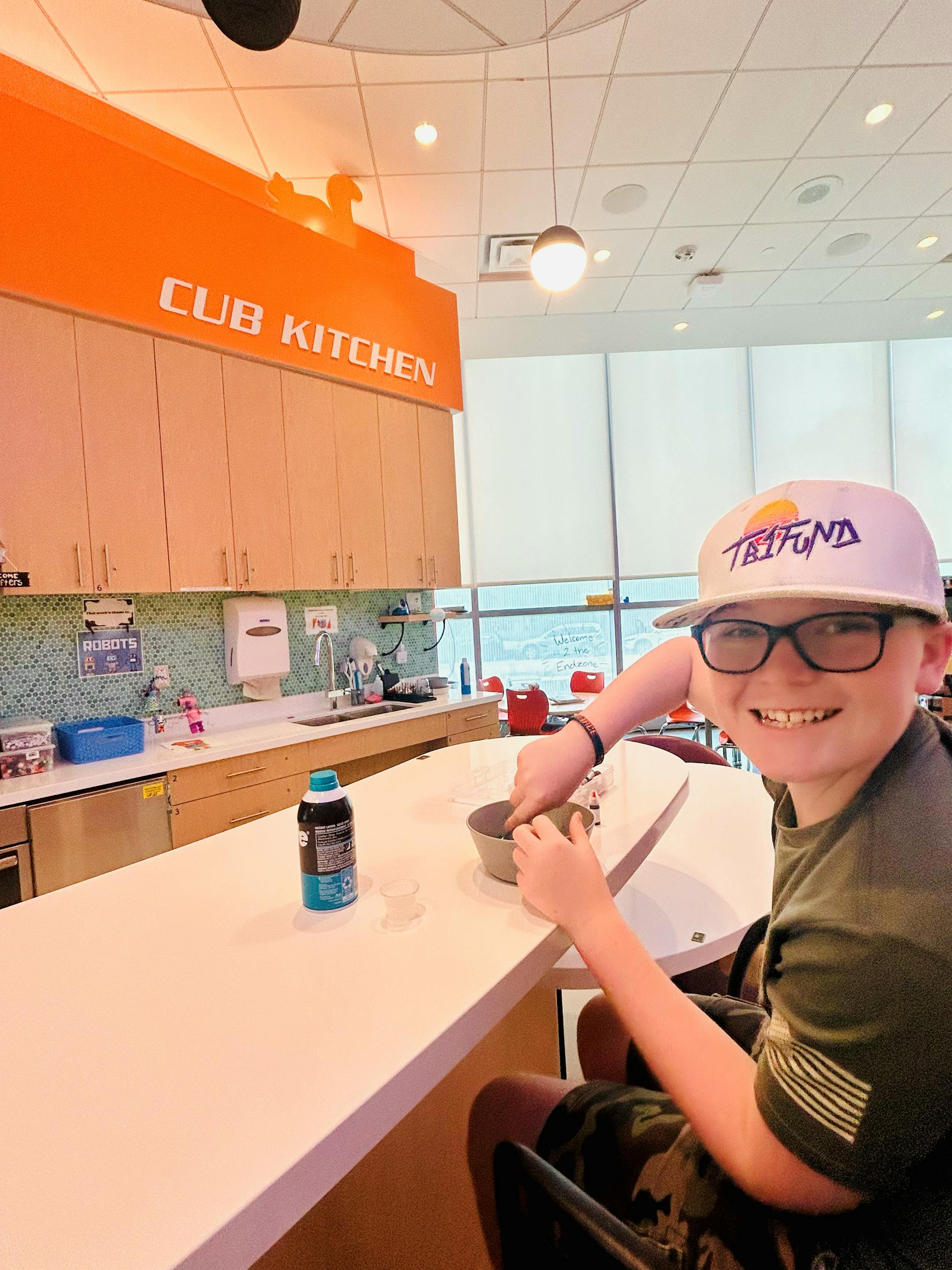 There, Jace and Jaxon enjoy crafting in the Cub Kitchen and facing off in the basketball and baseball simulators.