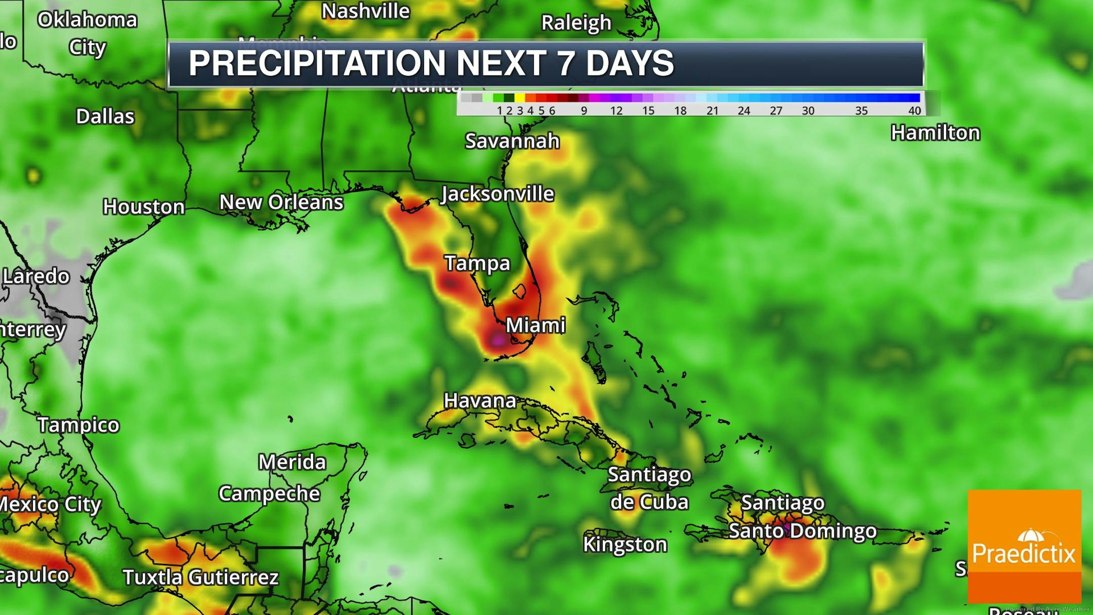 One of the main threats will be heavy rainfall, where several inches can't be ruled out. Flash flood concerns will be possible in some locations in Florida as we head into the weekend.