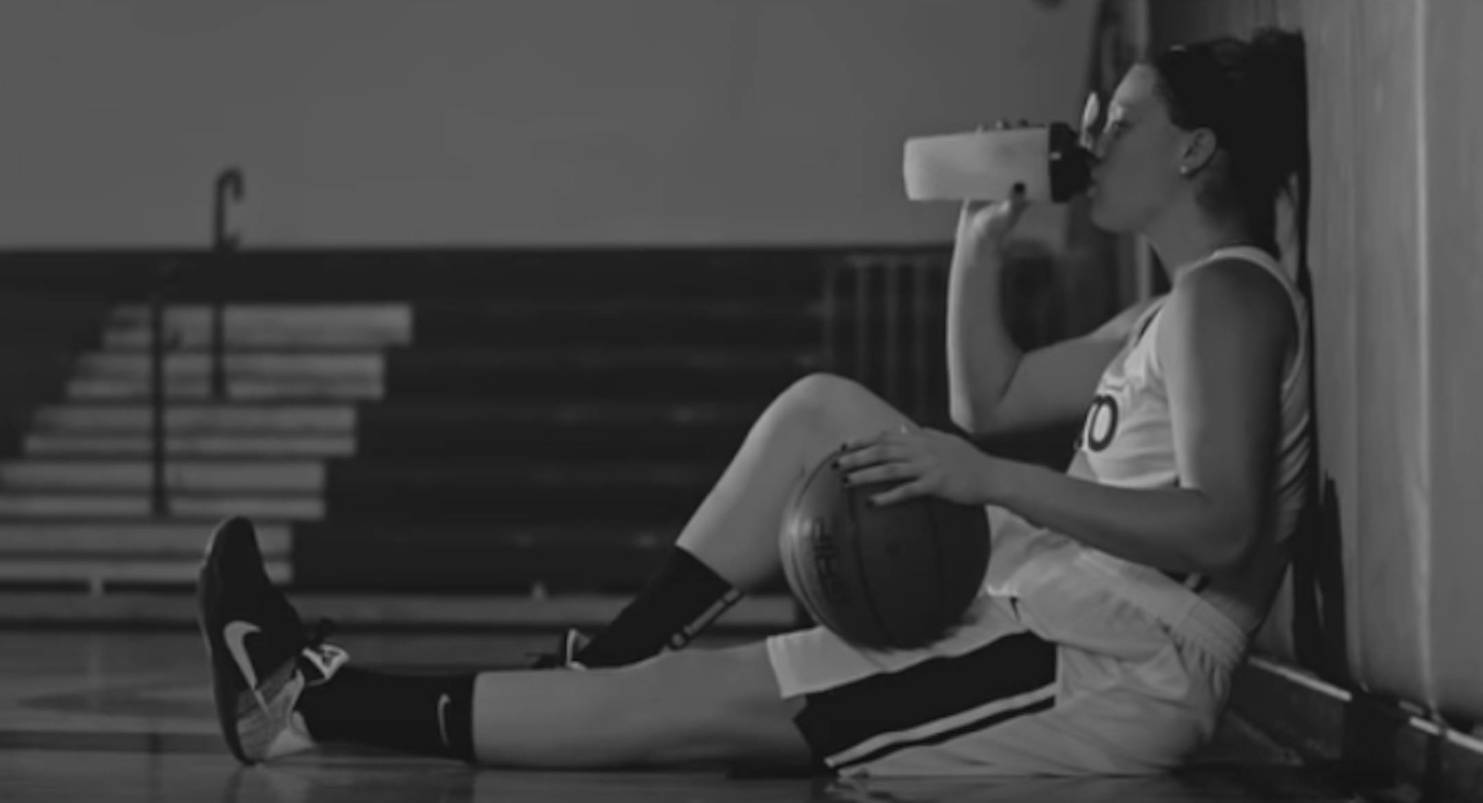 The ad shows Banham shooting hoops alone in a gymnasium while she tells the story about overcoming a knee injury that ended her season in December 2014.