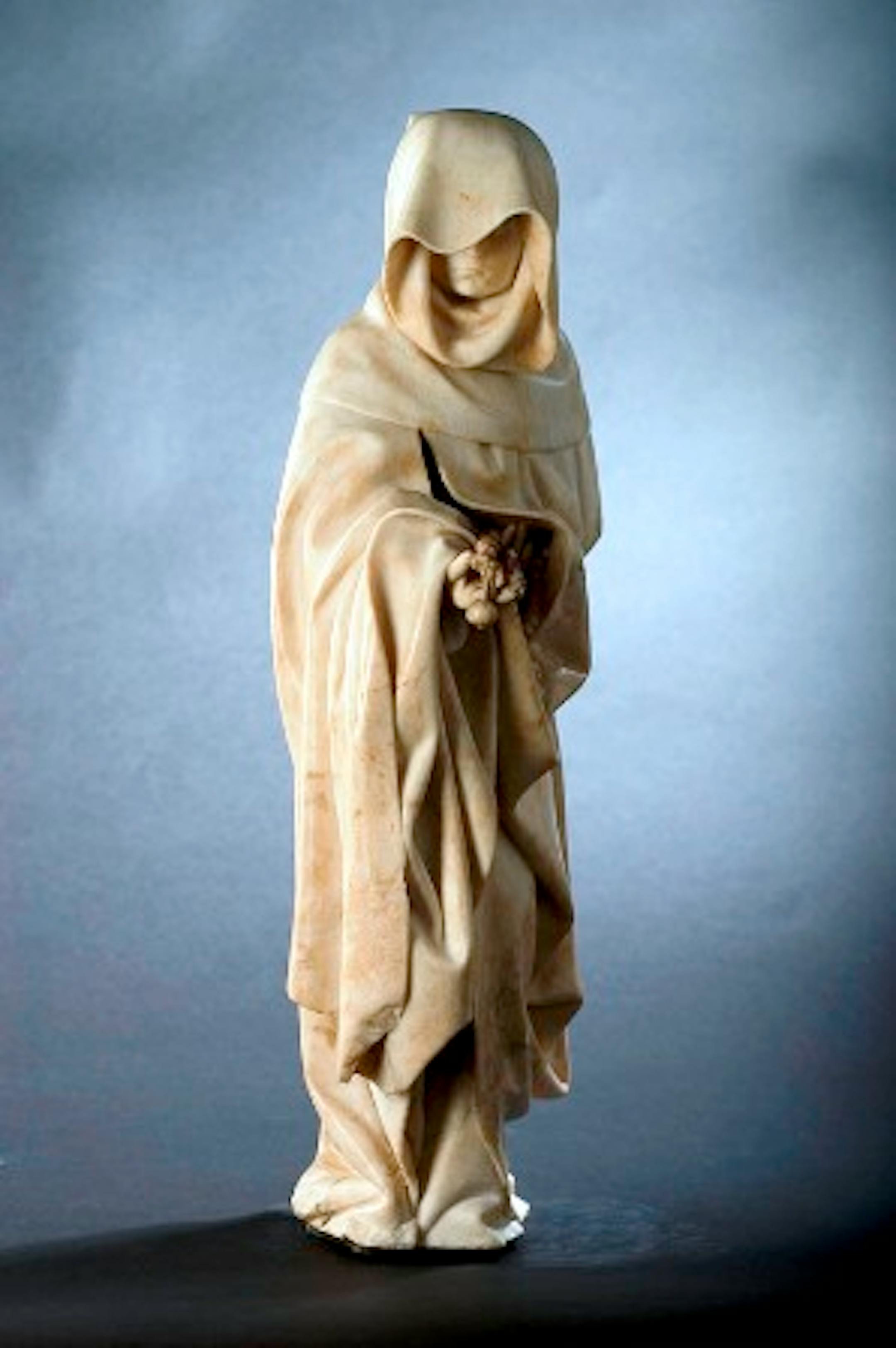 Forty masterpieces of French medieval sculpture that have never before left their homeland will come to the Minneapolis Institute of Arts in January 2011. The alabaster figures were carved in the mid 1400s for the tomb of John the Fearless, the second Duke of Burgundy, a powerful politician and art patron. They depict mourners lamenting the deaths of the Duke and his wife Margaret of Bavaria. Originally the figures were part of the ducal tomb that had life-sized effigies of the couple atop a slab of black marble with the mourners below in an elaborate Gothic arcade. Prized for their exotic material and sensitive carving, the 16 inch tall mourners wear hooded robes are shown wringing their hands, wiping tears, praying and bowed in sorrow.