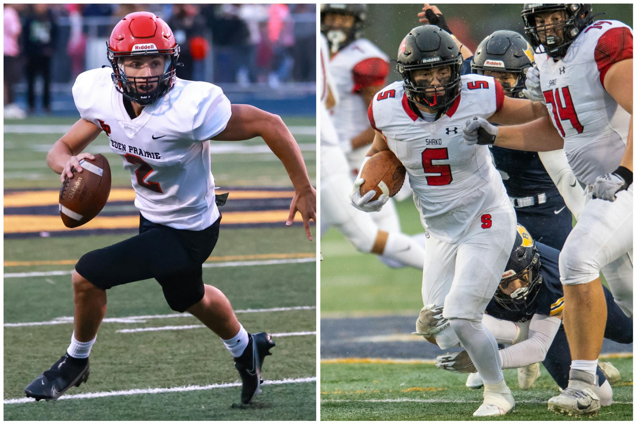 East Ridge 28, Woodbury 0: Jaelen Harper ran for two touchdowns in the fourth quarter to help the Raptors (3-2) upset the visiting No. 7 Royals (4-1). Tanner Zolnosky got the scoring started with a 68-yard touchdown pass to Jaylin Reese late in the second quarter. Riley Schwellenbach extended the Raptors' lead with a 22-yard interception return in the third quarter.