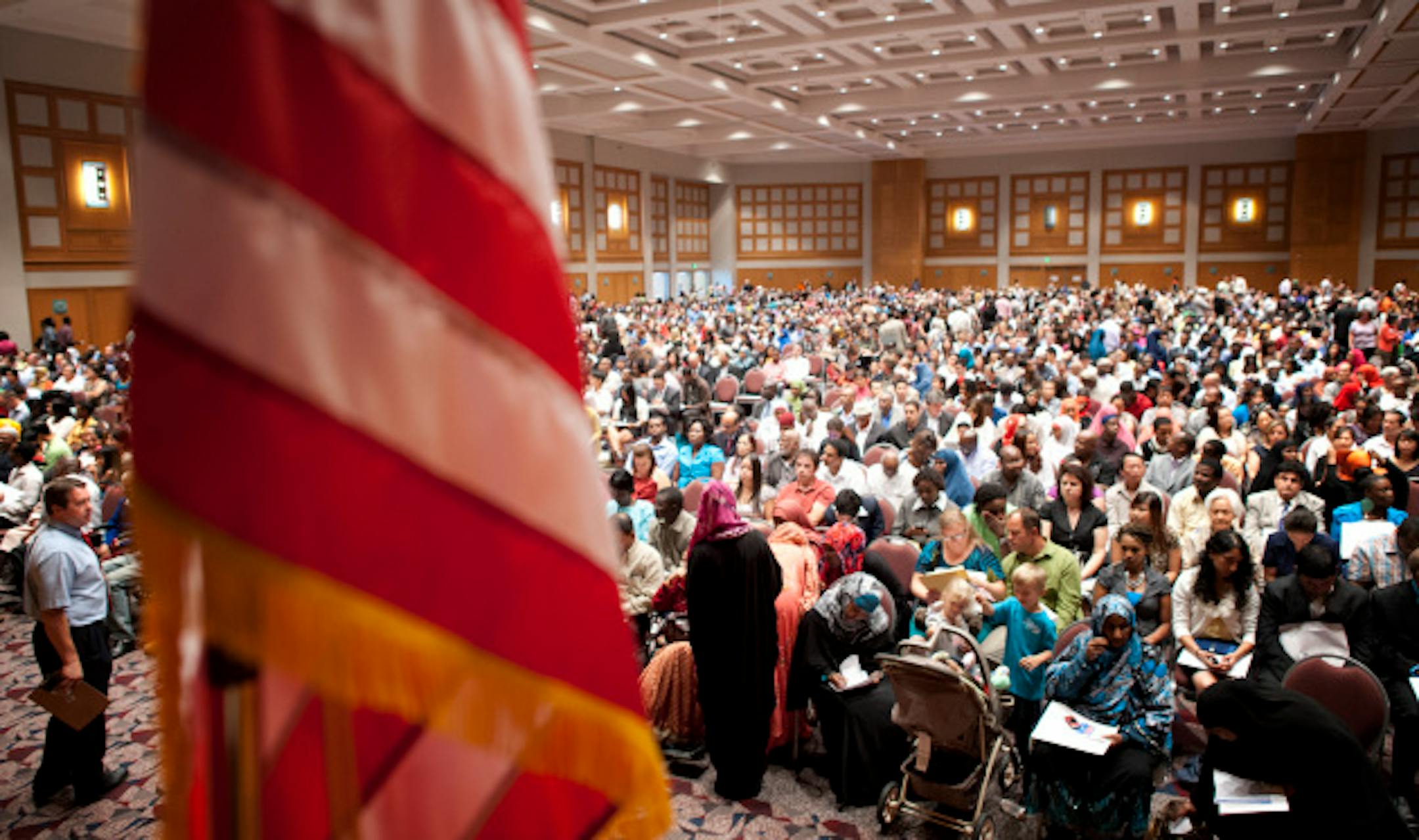 Proud new citizens: A record number of Minnesotans took oath at the Minneapolis Convention Center to become Americans, in part to vote in presidential election. (Allie Shah)