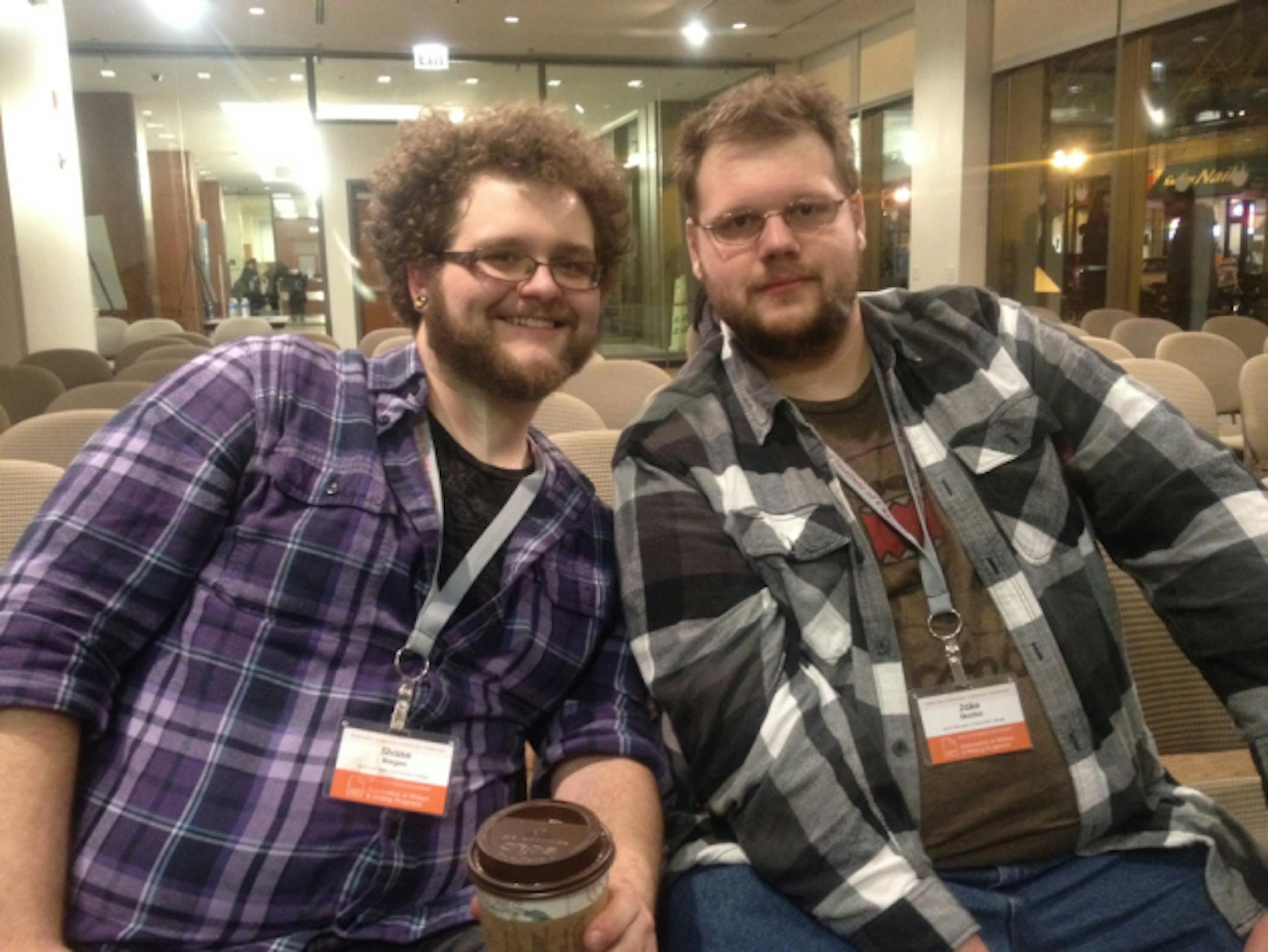 North Hennepin Community College students Shane Blegen and Jake Skurka at the Two Year College Caucus Reading. It's their first AWP.