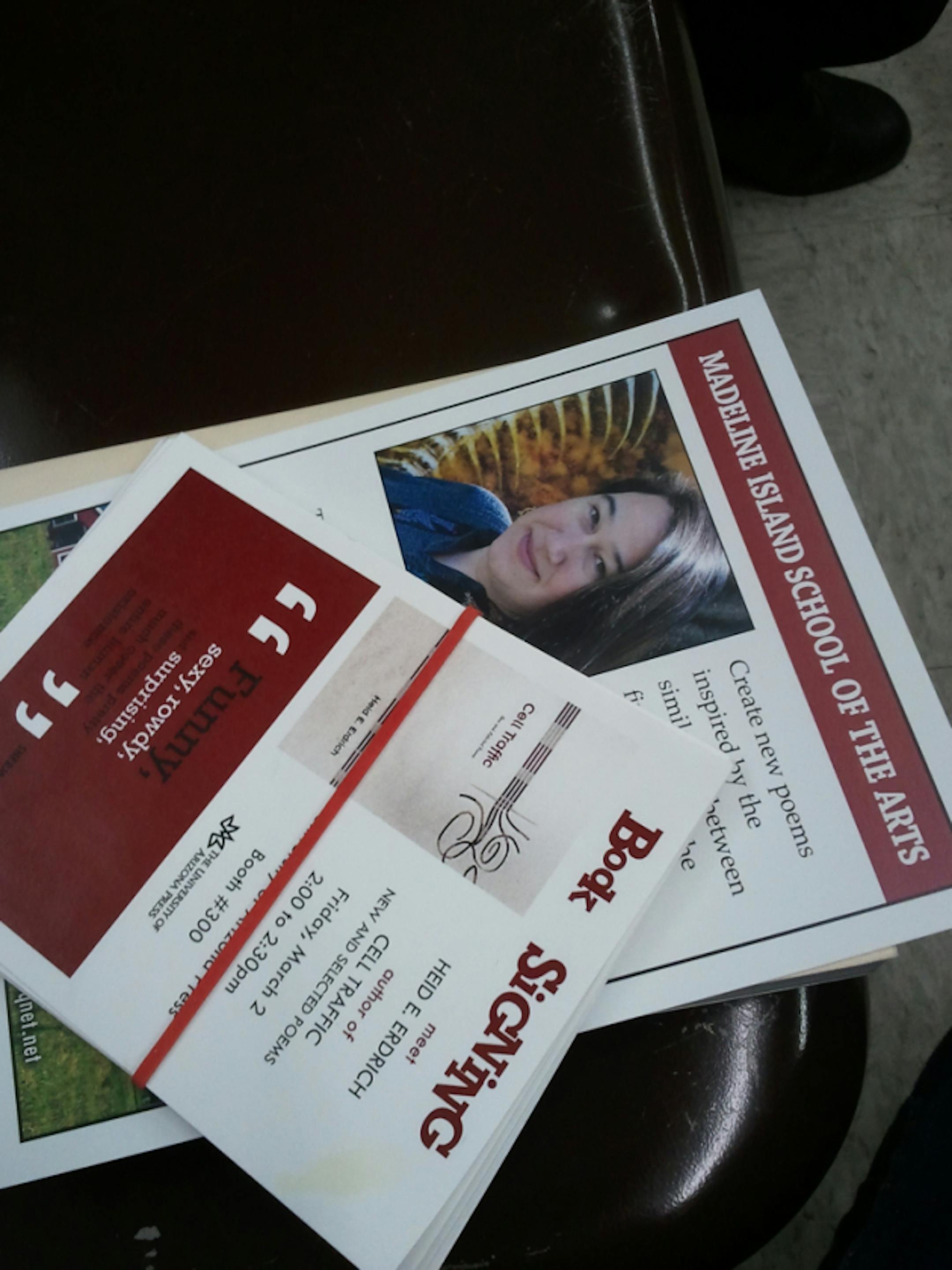 Left on a chair: materials promoting Minneapolis poet Heid Erdrich, who will be reading from her new collection at AWP on Friday.