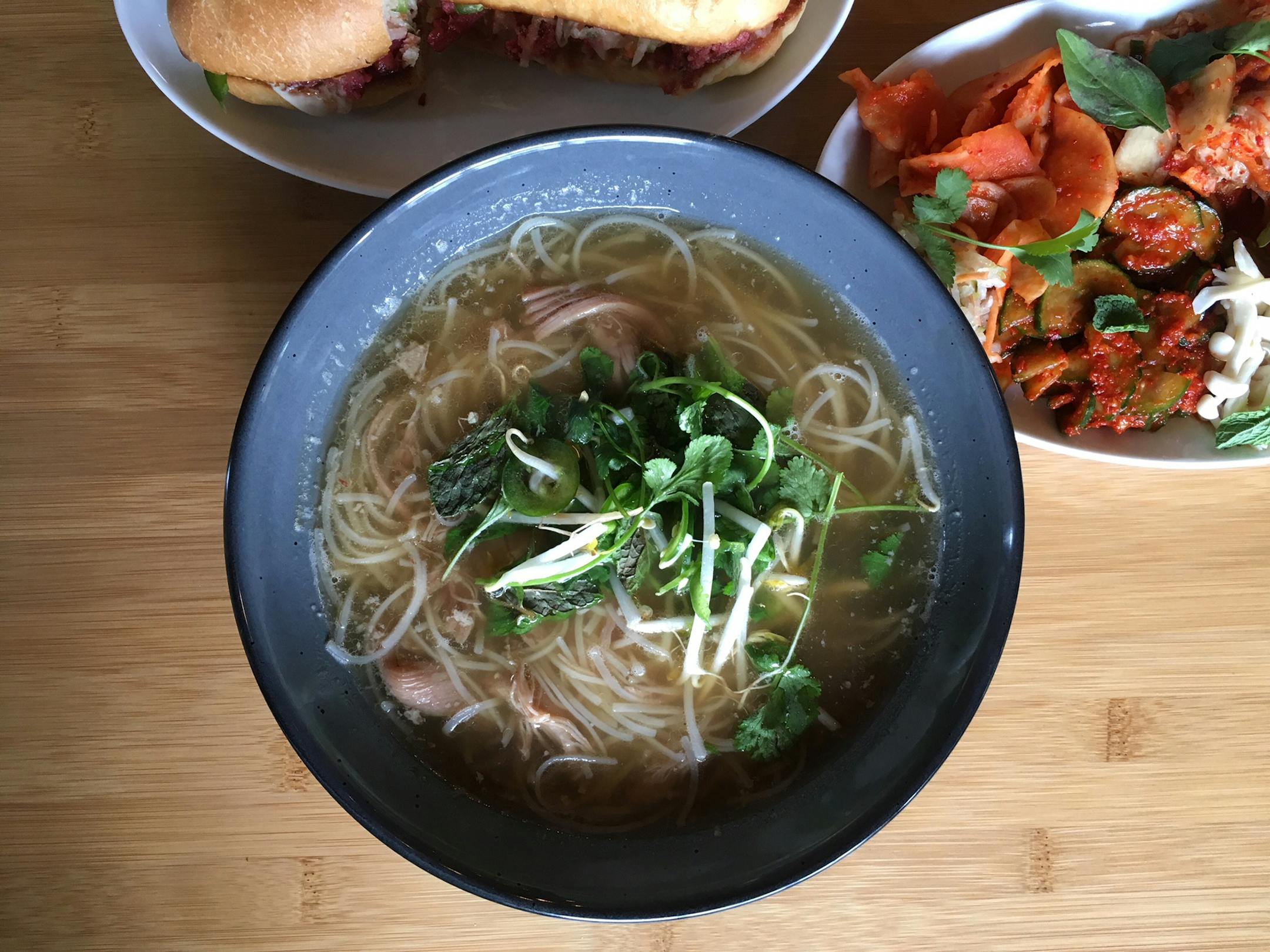 "Pho is everywhere in the city, but I wanted to make one that was ours," said chef John Krattenmaker. He encountered poultry-based pho during an eating journey through Hanoi, and took that idea ($16) back to the kitchen of his North Loop newcomer. Krattenmaker builds his slurp-every-spoonful broth the low-and-slow way, roasting chicken bones, adding warming spices (cinnamon, cloves) and charred garlic and ginger, with fish sauce coming in as a mood-altering finishing touch. Tender, salty duck confit and vermicelli noodles take on co-starring roles, finished with traditional pho accompaniments.