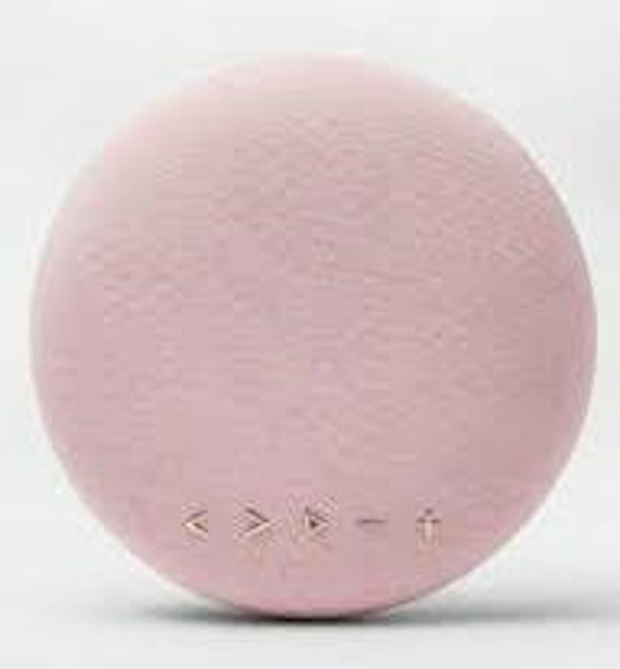 The 8-inch round portable Bluetooth speaker, with a price point in the middle of like goods, is shaped like a big M&M covered in a tweedy gray fabric. It is designed to prop up on a flat surface like a picture frame.