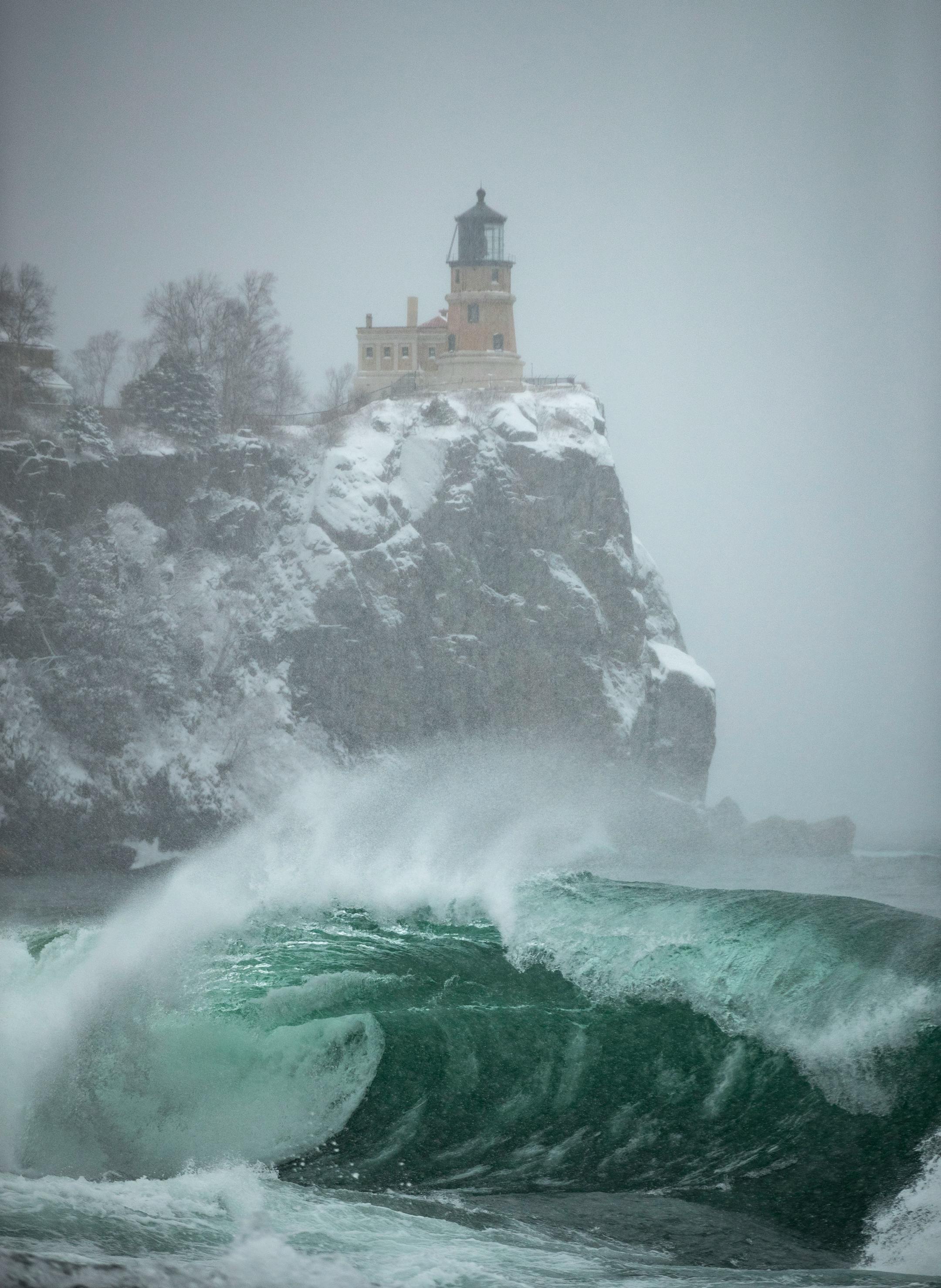 DULUTH – On Thursday's 47th anniversary of the sinking of the Edmund Fitzgerald, the waves were nearly twice as tall as the pier they toppled over behind Glensheen Mansion, which sits on the shore of Lake Superior.