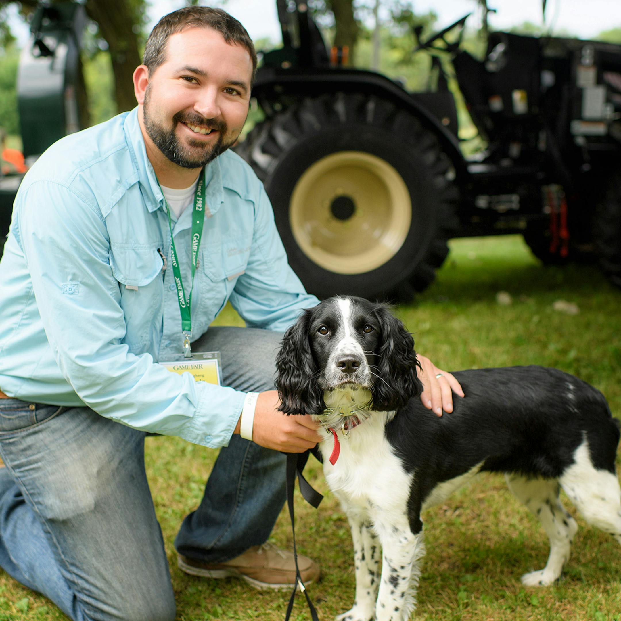 There's a lot of noise at the Game Fair — gunshots and the like — and Zeus, a 3-year-old black Lab, was getting a little antsy. "All the shots going off now, he's getting real excited," said Mark Nelson, who was at the fair with his son, daughter, their friend, and Zeus.