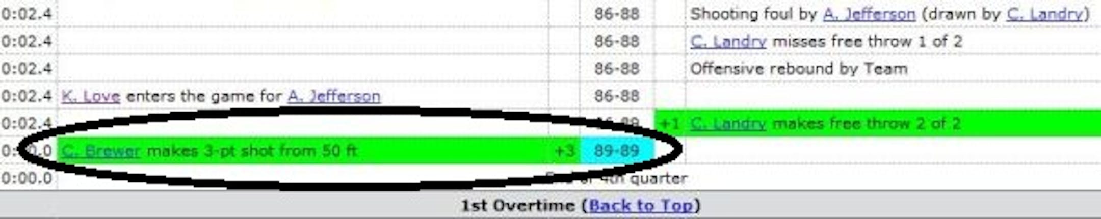 *The reason it got that far is that Corey Brewer SWISHED a three-point shot from half court at the buzzer at the end of regulation.