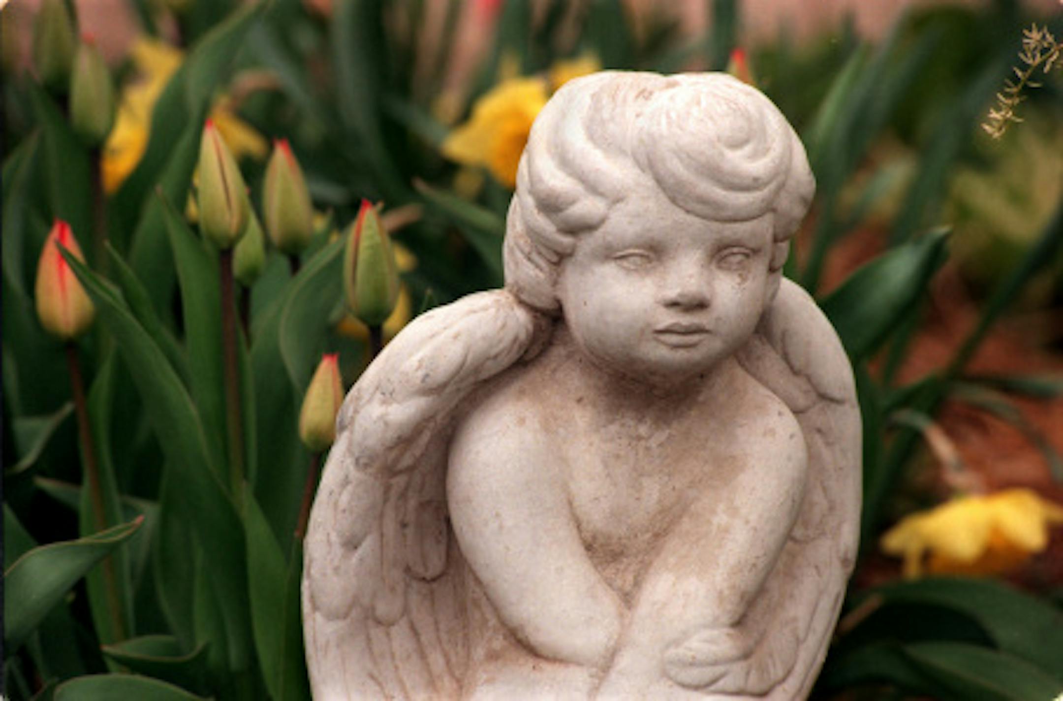 The small stone cupid I bought her a few years ago still looks great. But the statue I picked up for her, of two kids reading a book together, does not. When I first spotted it, it had a beautiful greenish patina, like old bronze. (I knew it wasn't bronze, since it was in my price range.) But it was heavy like stone, and it seemed durable.