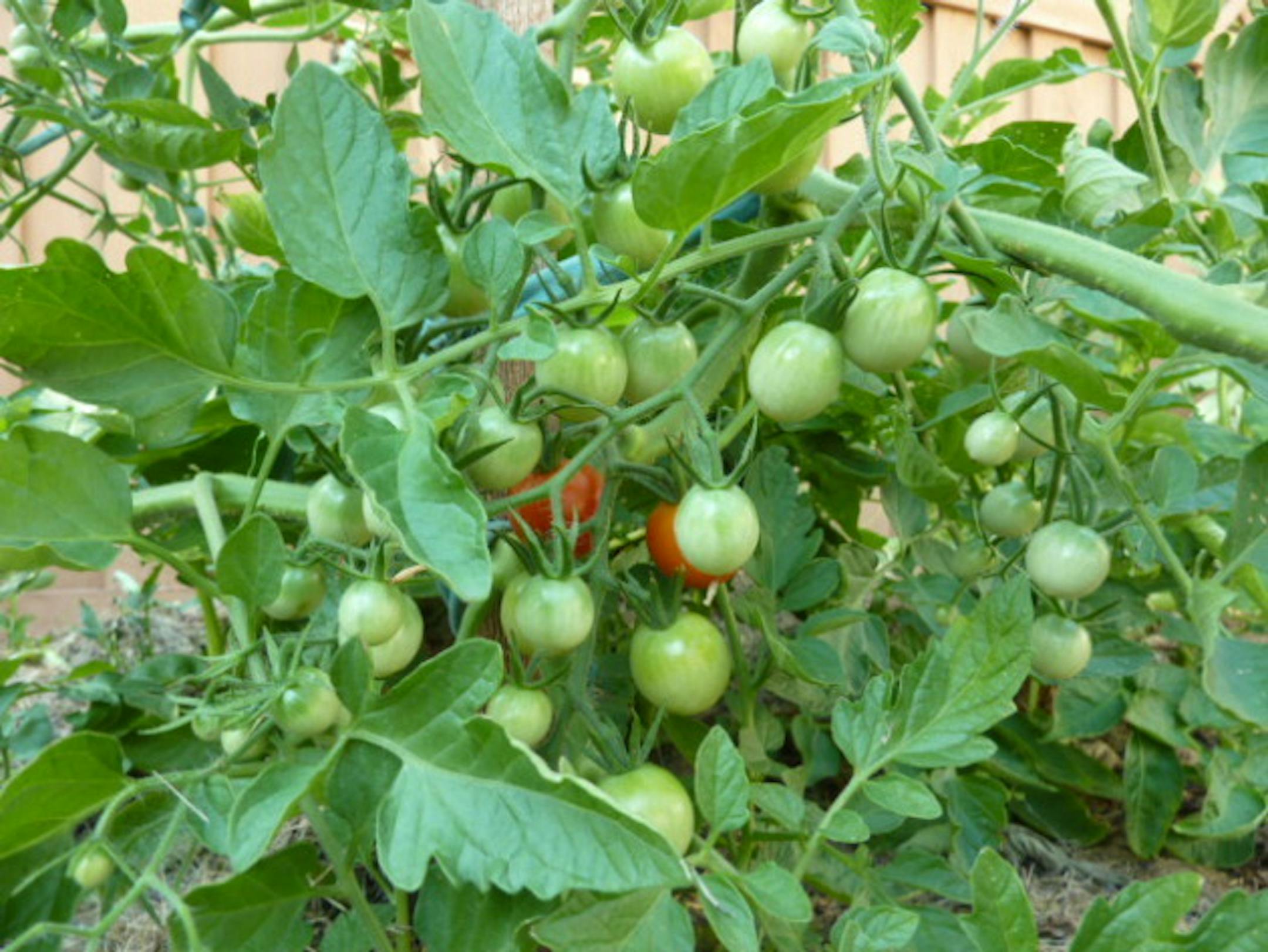 Here's The Good. Early July and I've got cherry tomatoes turning red. The competition for Good is the petunias that love this heat. Cute and happy even in ninety degrees.