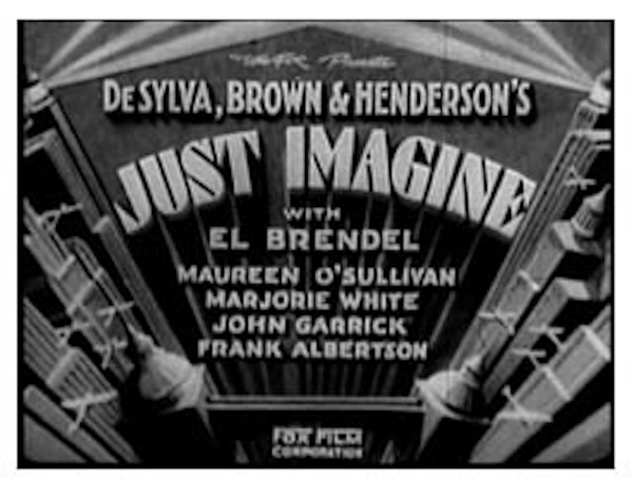 By the way, the little title card above is for "Just Imagine," a bizarre sci-fi movie from the early talkie years. It had the most astonishing special effects anyone had ever seen - outside of Metropolis, that is. It's almost an American remake of Metropolis without the class warfare, and with musical numbers. In other words, the American version of Metropolis. Speaking of which: