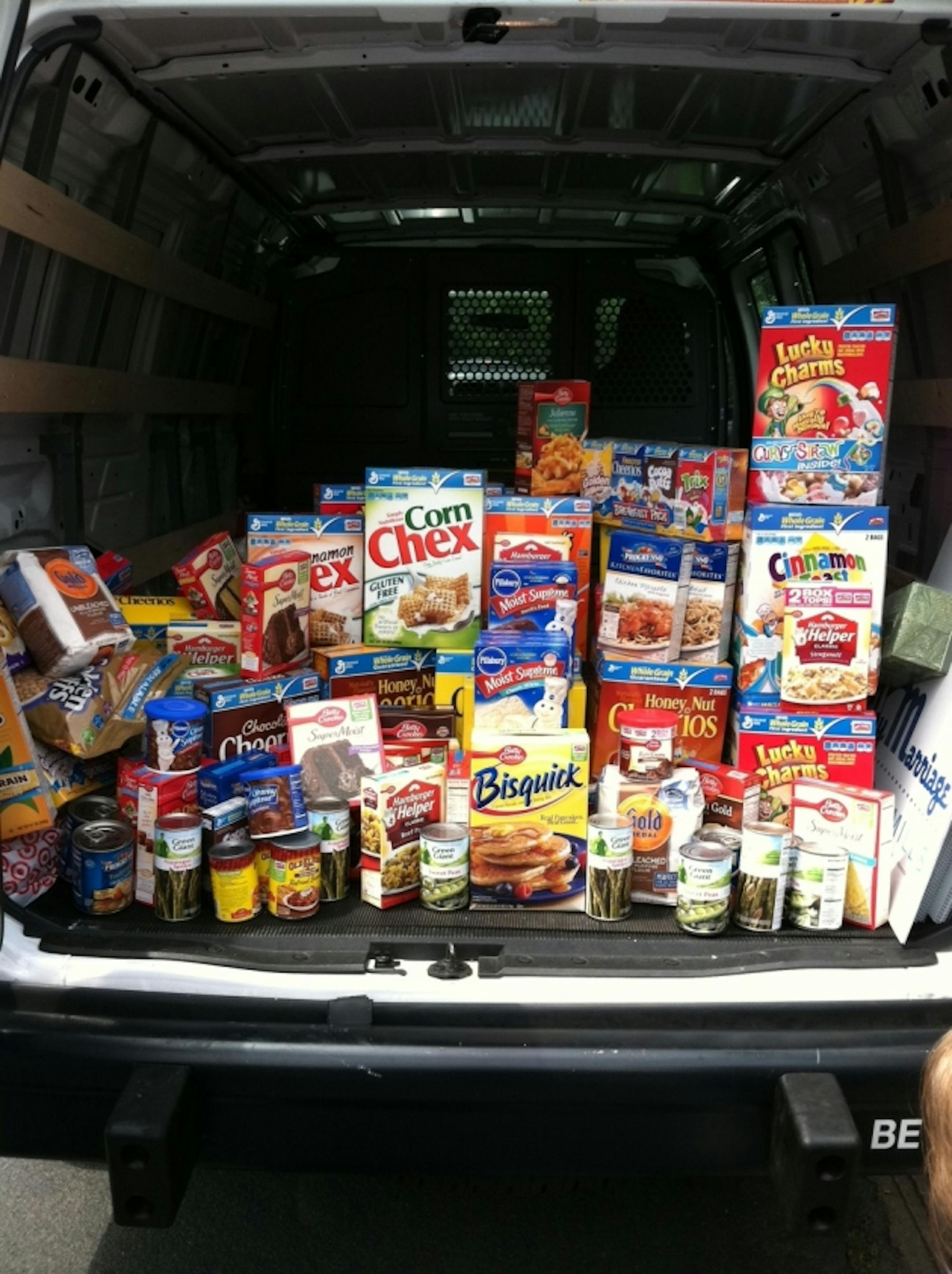 About 75 supporters stood outside the company's Golden Valley headquarters over the lunch-hour, urging supporters to drop off unopened boxes of General Mills' cereal and other products, which will be donated to charity. A smattering of motorists stopped to drop off boxes of cereal and other products during the two-hour event.