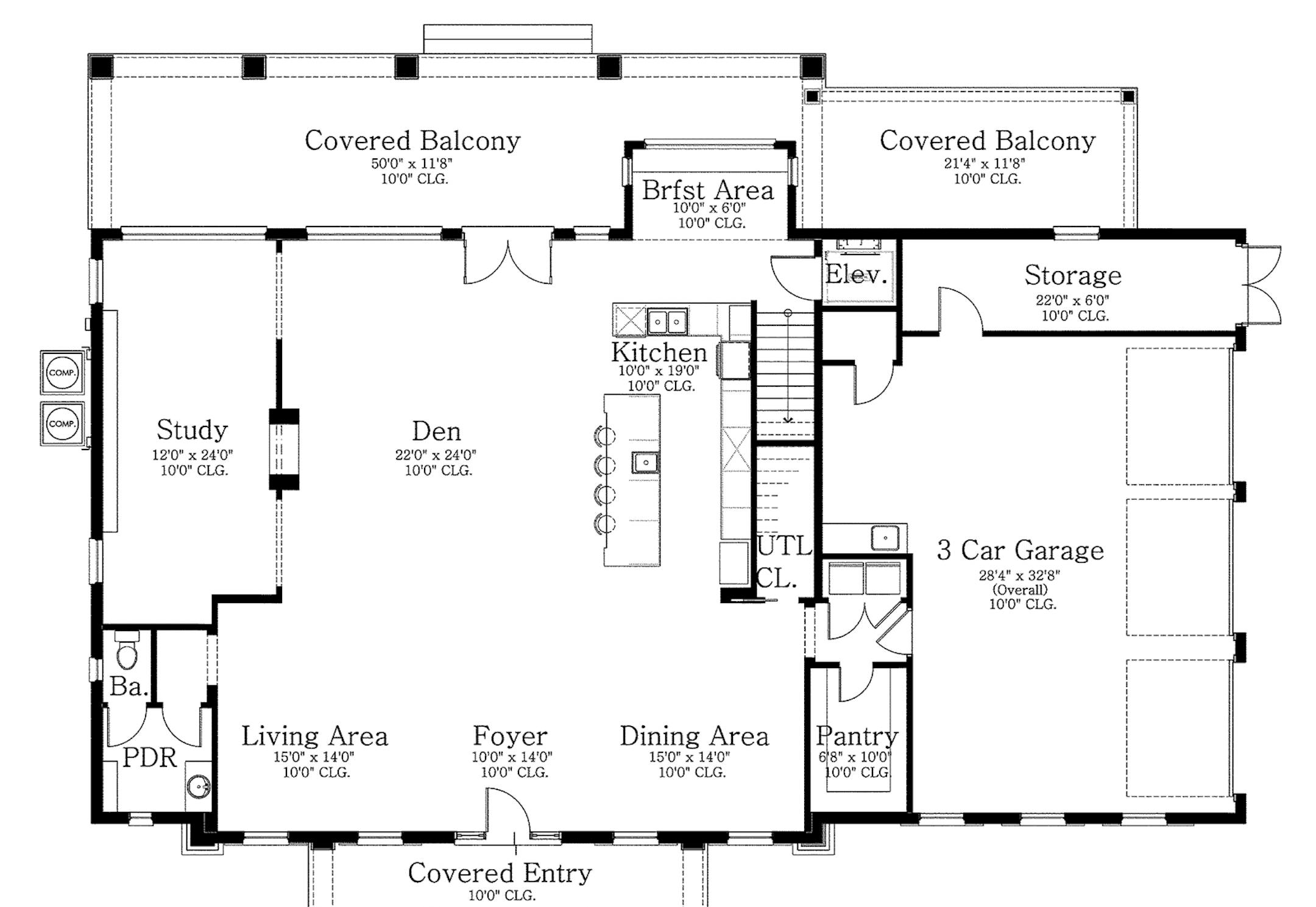 This classic Georgian plan has a lovely portico with a balcony above that provides a great homage to the past. The open layout features the kitchen flowing into the dining room, the breakfast nook and even the more-formal living space. The island will become the center of activity with a nearby cozy nook offering built-in seating. An elevator makes it easy to get upstairs, where one of the bedrooms offers privacy and space for an in-law or boomerang kid. The luxe master suite includes its own exercise room. Two more suites are also on this level. Every bedroom accesses outdoor living spaces.