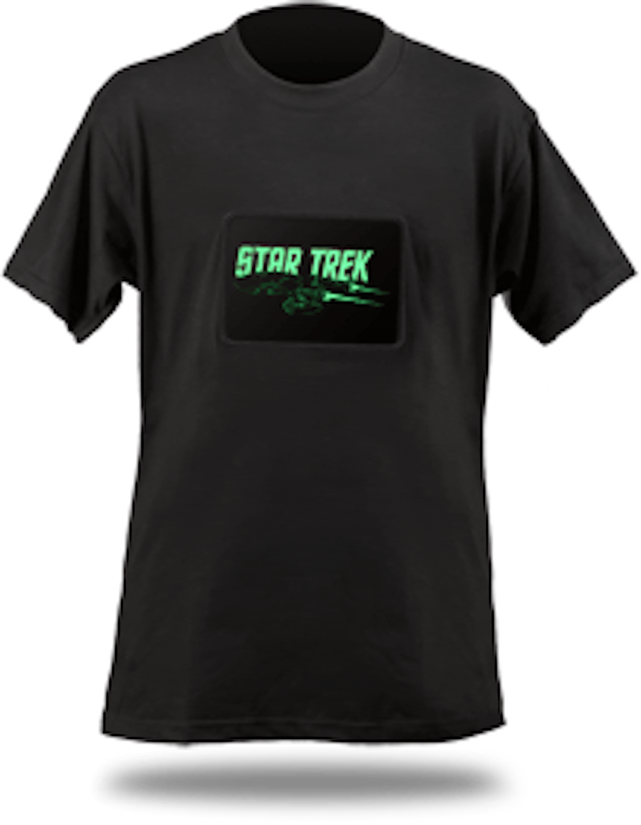 Star Trek Illuminated Shirt ($14.99, down from $39.99 -- what a deal!), which lights up with the words "Star Trek" and a zooming USS Enterprise (TOS, naturally). As if wearing a Star Trek shirt isn't enough to announce your geekiness to the world, a top that requires batteries (4 AAA, not included) will register an 8.0 on the Richter scale of geek-quakes. Live long and prosper -- as long as the batteries are charged.