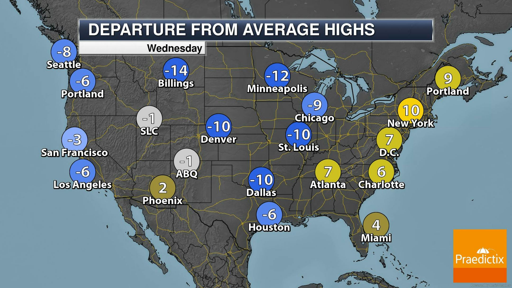 After a snowy Tuesday, temperatures close to home will be much colder Wednesday & Thursday. We'll get a brief blip of warmer air on Friday, but then another surge of below average temps on Saturday.