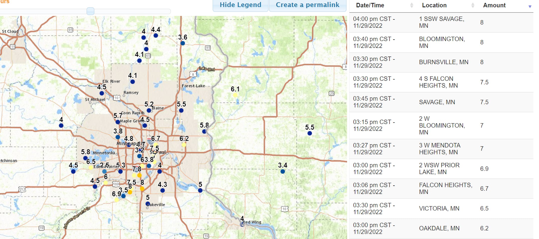 Tuesday was a very snowy day across the Twin Cities and it came just in time to ruin both AM & PM commutes. Some of the heaviest tallies came in from the Savage, Bloomington & Burnsville area, where 8" was reported. It came down heavy enough during the day that the MSP Airport had to shut down there runways.