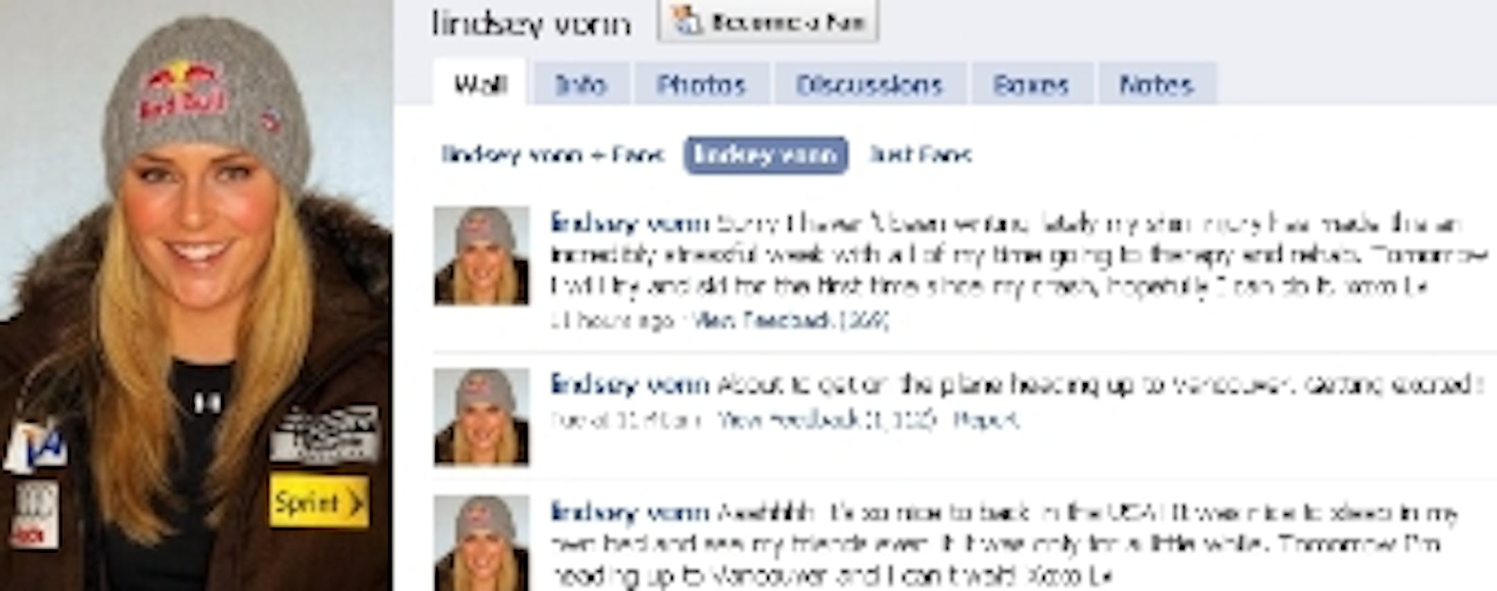 Lindsey Vonn, ONE OF US, has been quite the newsmaker lately. But really, how much news do we need right now? How about this sentence, taken directly from her Facebook page. (Or, if you prefer, Twitter):