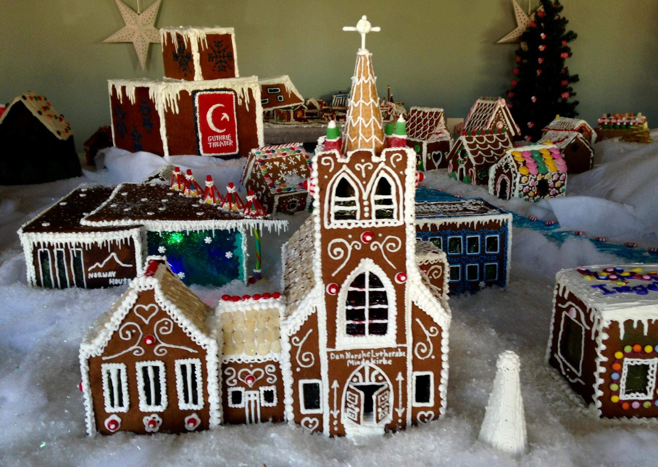 So does she, a pastry bag of icing in her hands, ready to pipe on any last-minute touches on the gingerbread structures before her, more than 50 on display at Norway House in south Minneapolis.