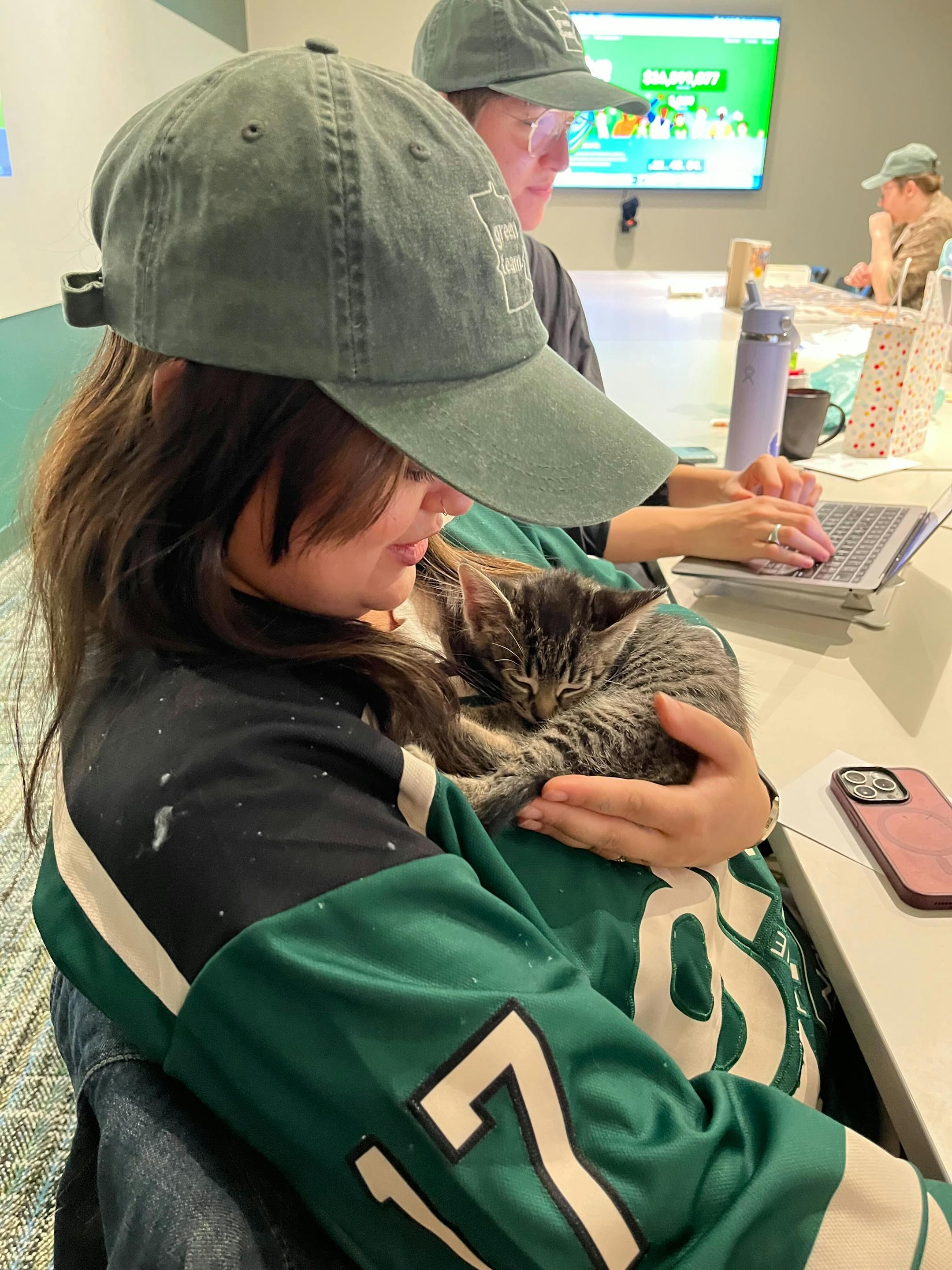 “You are such a good fundraiser,” GiveMN operations manager Manya Jacobson whispered to the striped kitten snoozing in the crook of one arm while she typed with the other. “Banyan loves raising money.”