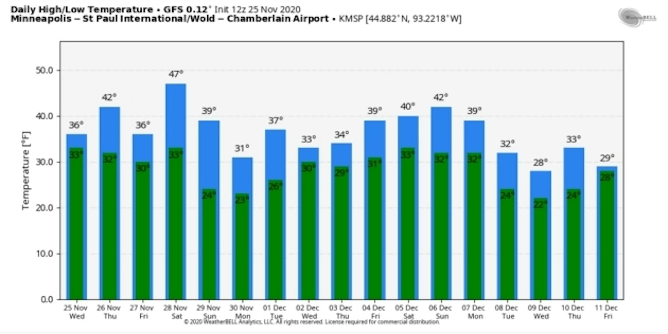 The Doppler shall remain unplugged until further notice - no big storms brewing. After approaching 50F Saturday we cool off next week, before another Pacific-sweetened surge of 40s the second week of December.