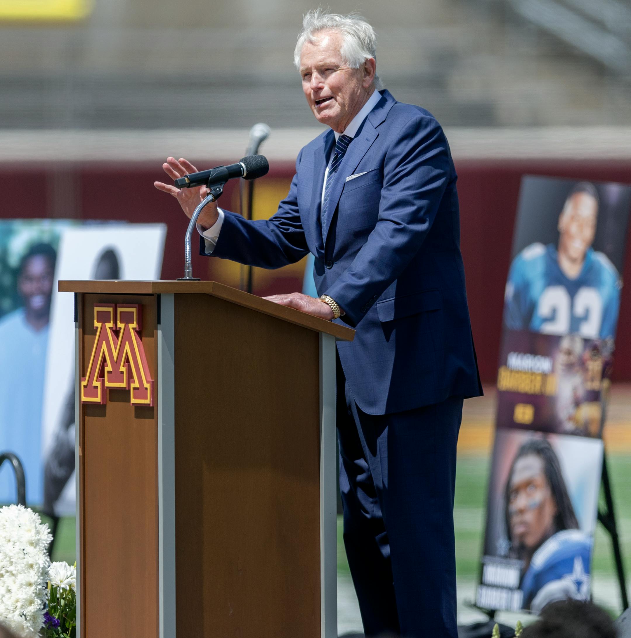 The former Gophers football coach is on the mend and feeling better after a couple of medical scares in March. He slipped on an icy sidewalk retrieving the morning paper and landed on his back.