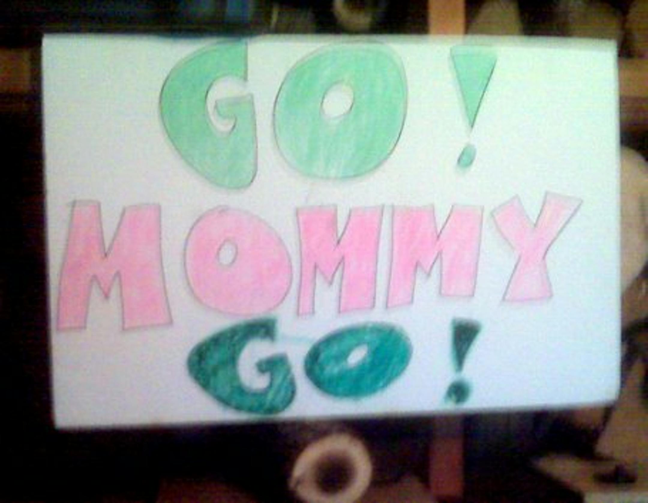 This is what I see as I back out of my garage stall for work each morning. It is a sign that my Peter and the kids held up for me as they cheered me on during my first Iron Girl duathlon two years ago. Peter found it in the closet and posted it for me to see every morning when I leave. It really helped me to have those words usher me away to another work day, especially Monday mornings. It gives me a boost of motivation. I see the sign and think to myself "That's right work week, I'm ready for you. Bring it on! "Go Mommy Go! The thing is the kids are asleep when I leave the house at sunrise. The other day I stayed home a bit longer to go to an appointment near our house. The kids were up; we had some waffles together on a weekday together, a rare treat. But the reality is when it was time for me to leave. I didn't hear the encouraging "Go Mommy Go!" I heard. "Don't go to work. Stay mommy. Stay. " Once again, the tugging. At my pant leg, my paycheck and my heart.
