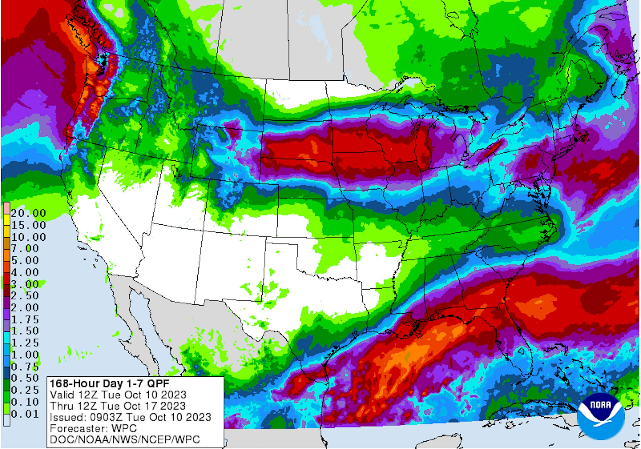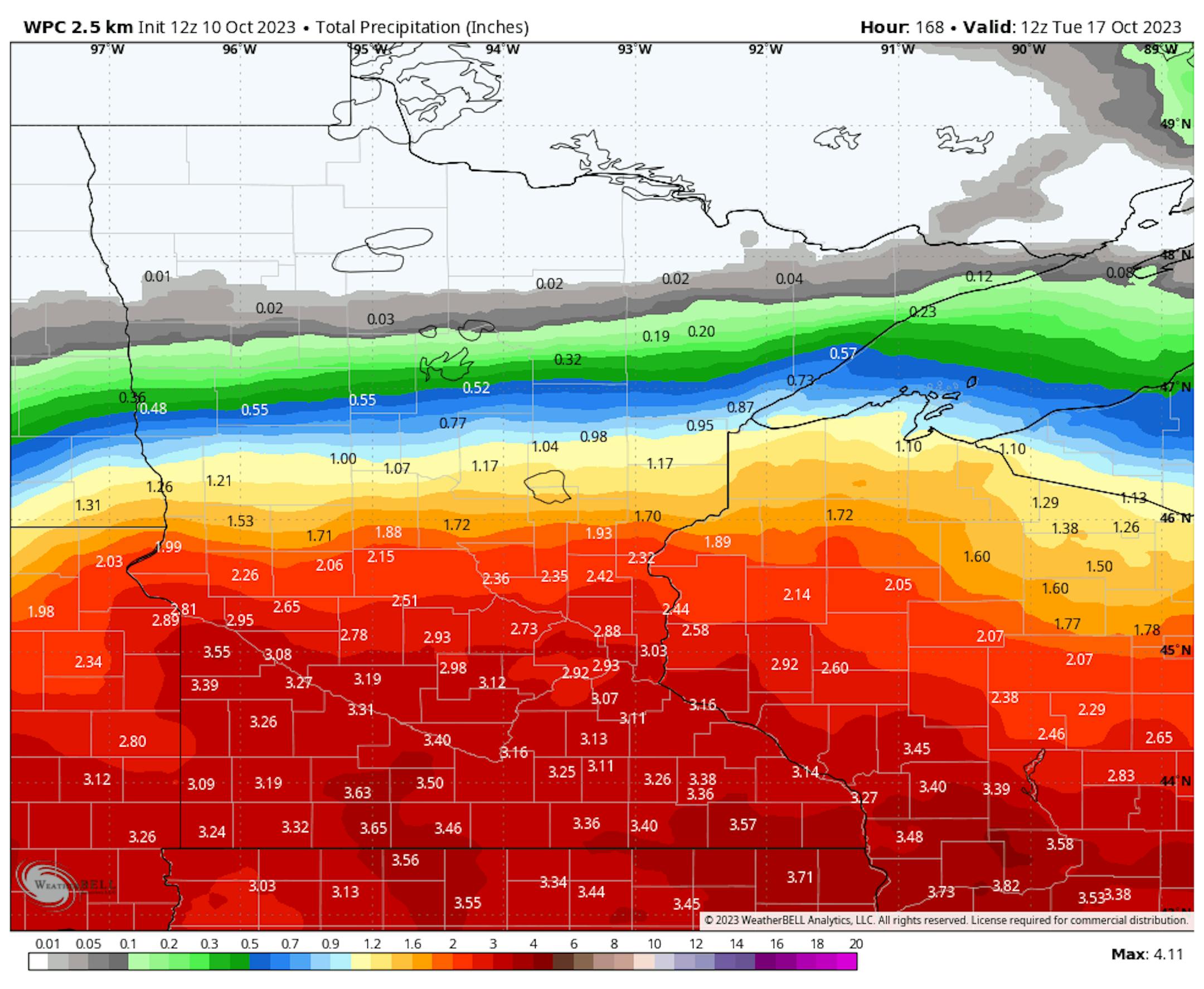 The extended precipitation outlook through the weekend shows widespread soaking rains across the Midwest as we head into the 2nd half of the week. Some spots could see in excess of 2" of rain through Saturday!