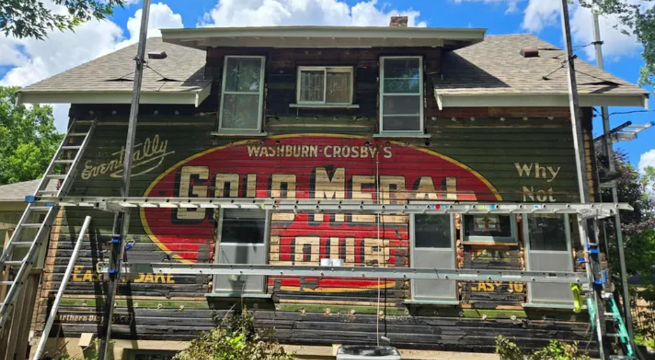 Johnson, 48, a Minneapolis native who moved to the city’s South Side 20 years ago, was renovating his home when workers discovered two large advertisements for Washburn-Crosby’s Gold Medal Flour underneath his siding. Now, Johnson is asking for online donations to keep the signage on display.