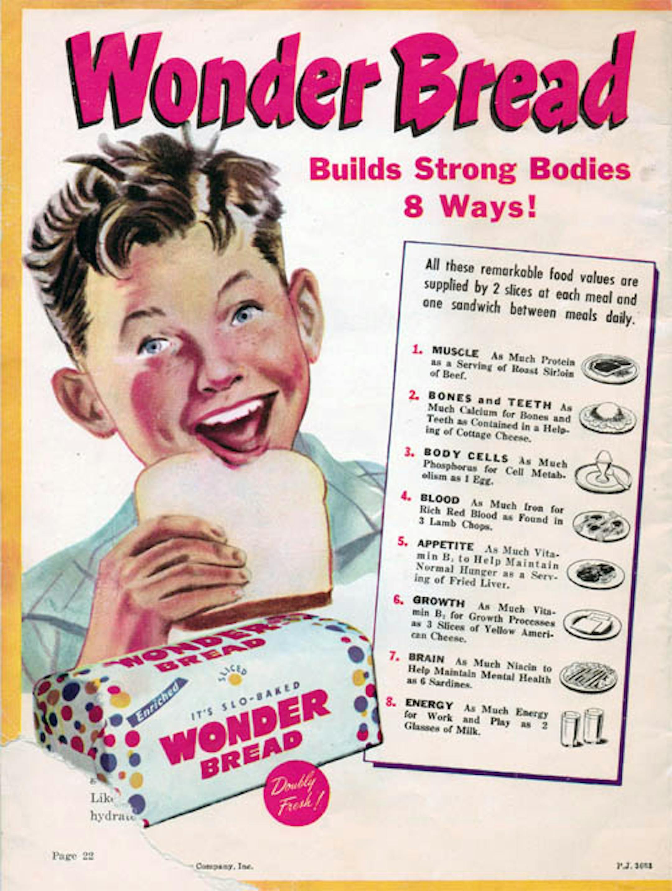 Few consumables sum up the trajectory of 20th century culture like Wonder Bread. It was born as a scientific marvel - slo-baked! Bursting with nutrition! A shelf-life of nine years! When the World's Fair opened in 1939, it seemed natural that this technological boon should have its own magnificent palace:
