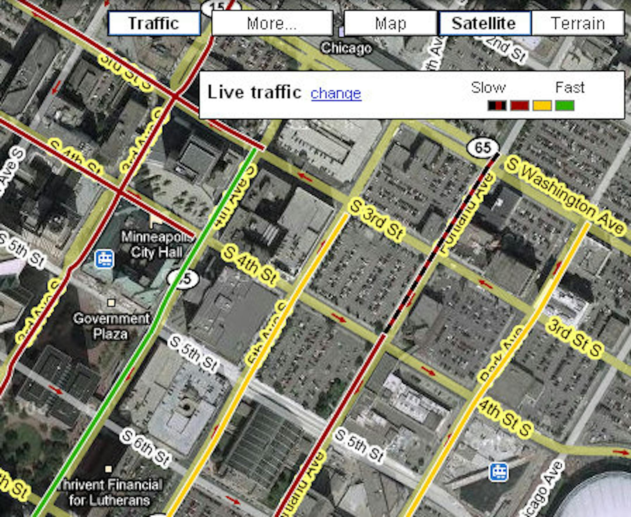 Always curious to know about traffic flow, I checked out the city streets around headquarters a little while ago and was surprised to see a red-and-black line signifying congestion on Portland Avenue: