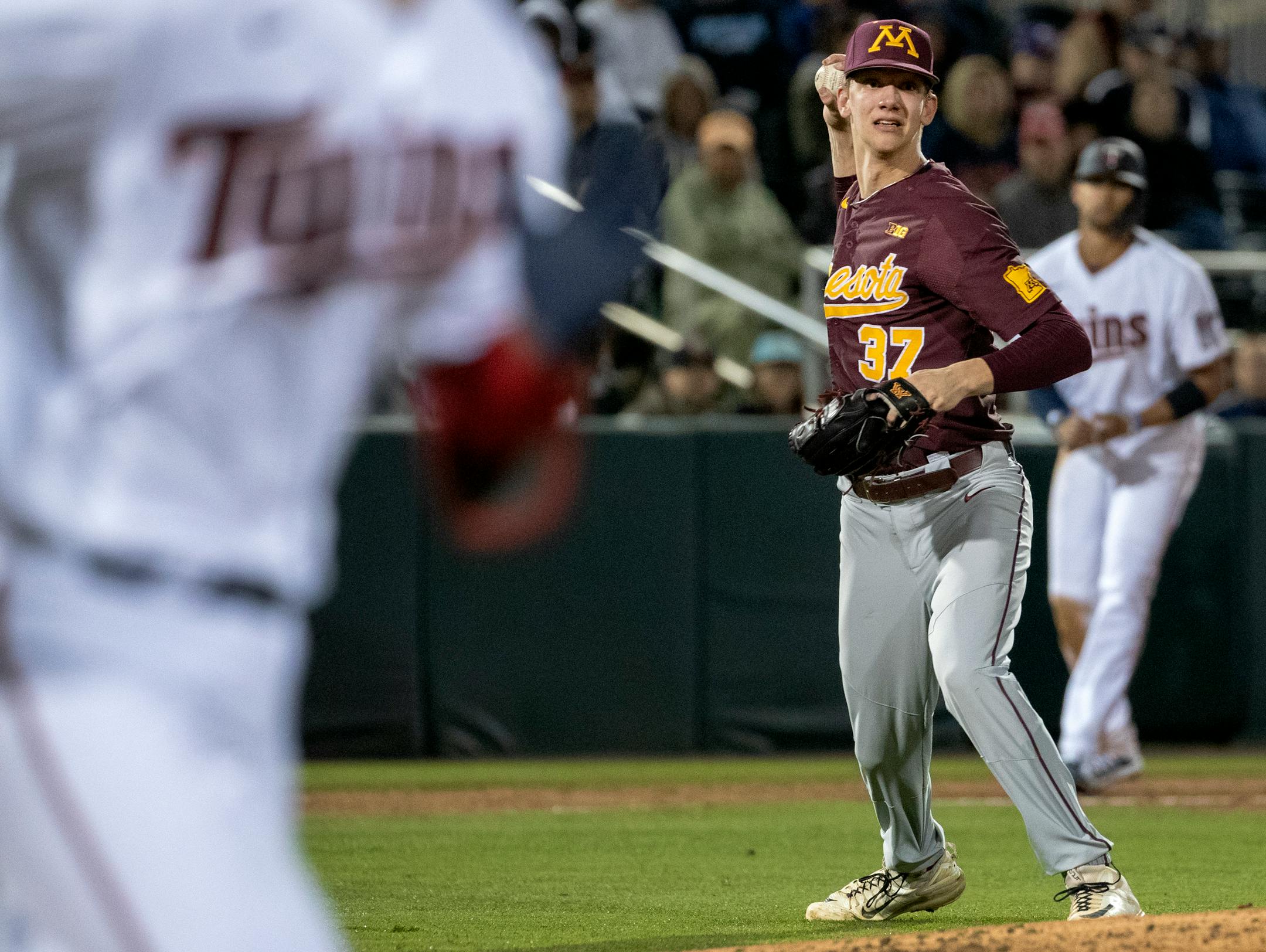 Iowa's Adam Mazur, a sophomore from Woodbury, was named the Big Ten pitcher of the week. He got his first victory of the season, going six innings and striking out nine without issuing a walk in Iowa's 12-2 win over Air Force. He retired the final 16 batters he faced.
