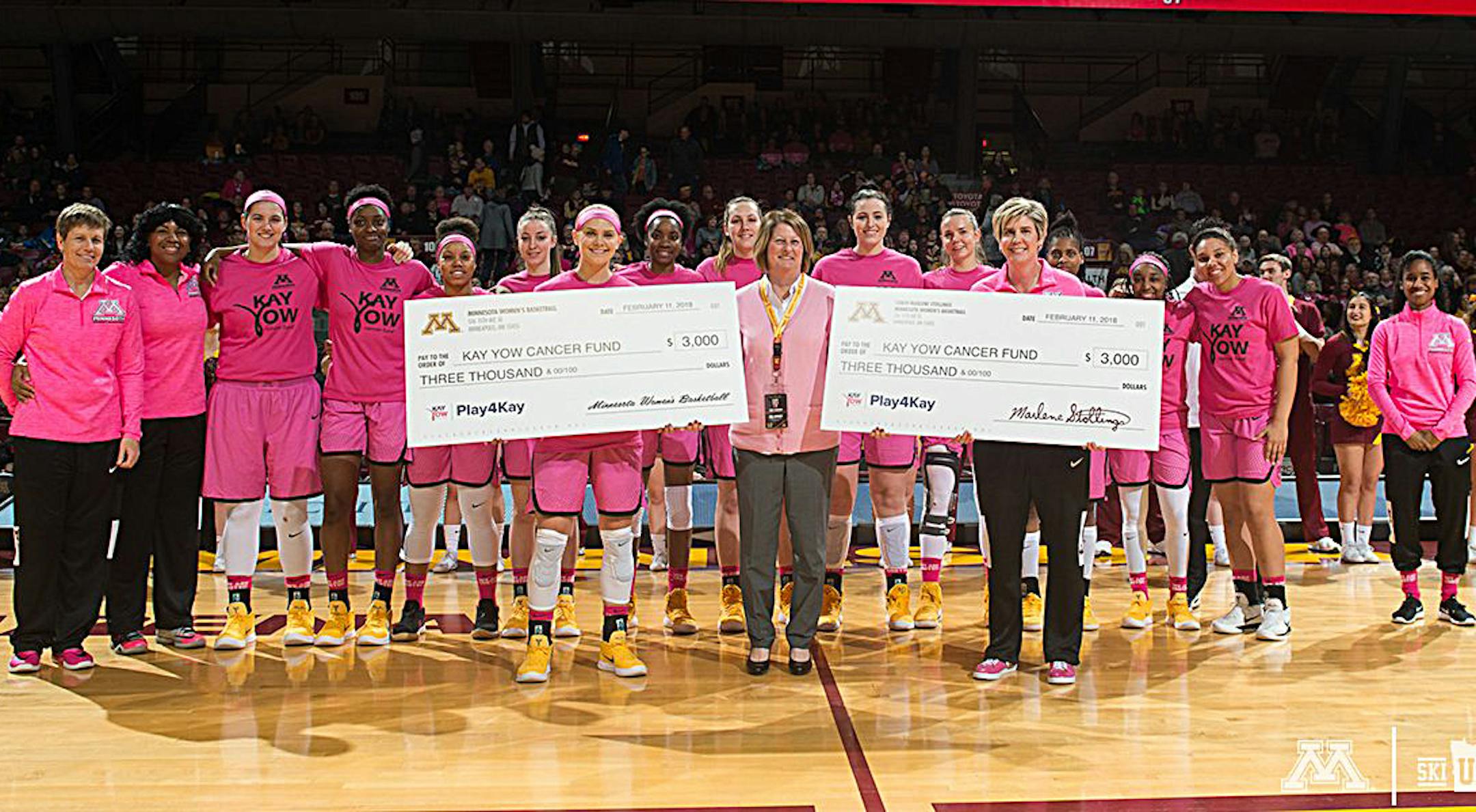 It can be argued the game result finished second, however, in the "important and meaningful" standings. A pregame ceremony, before the Gophers' annual Pink Game, featured the program donating a pair of $3,000 checks to the Kay Yow Cancer Fund.