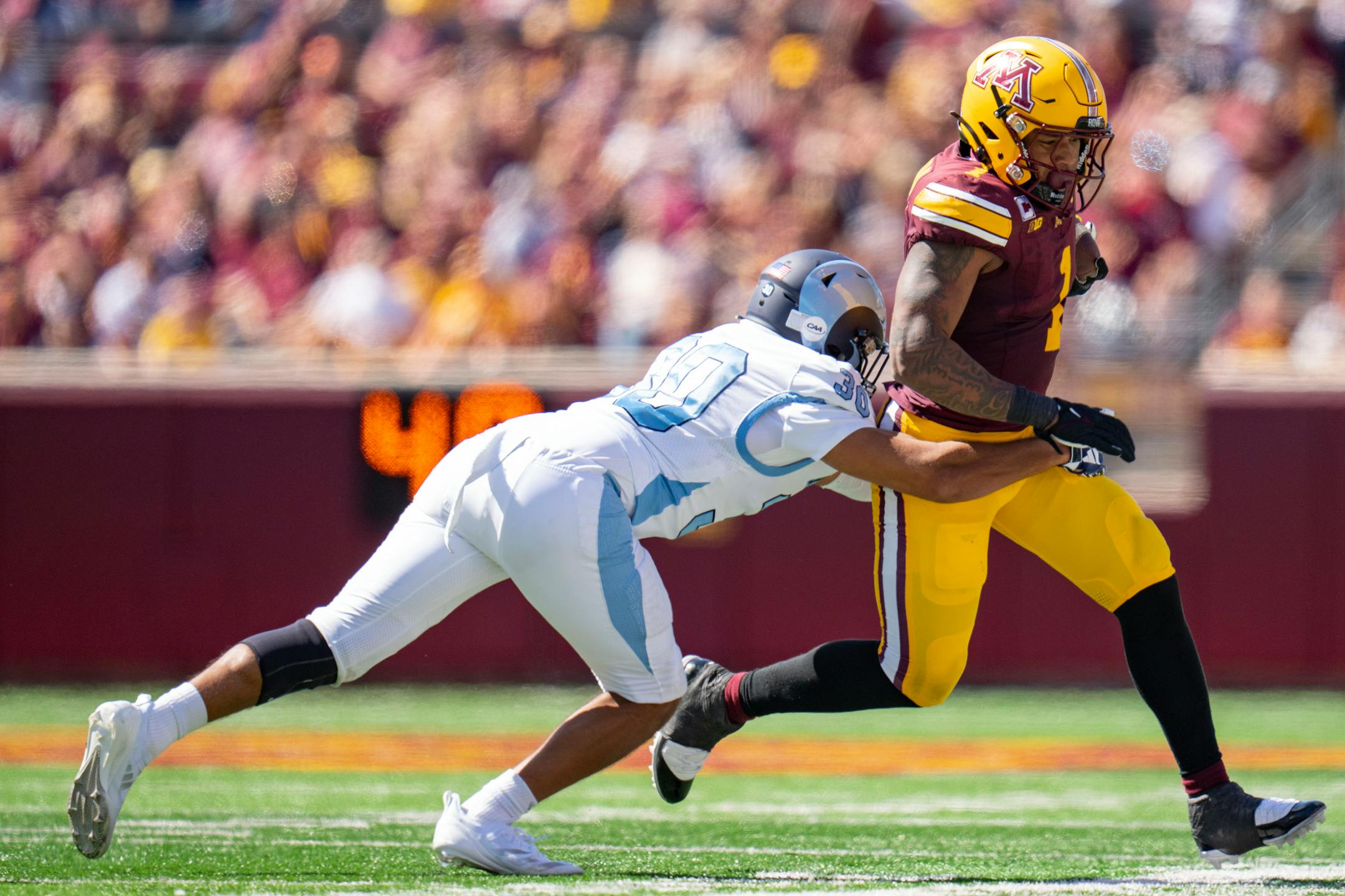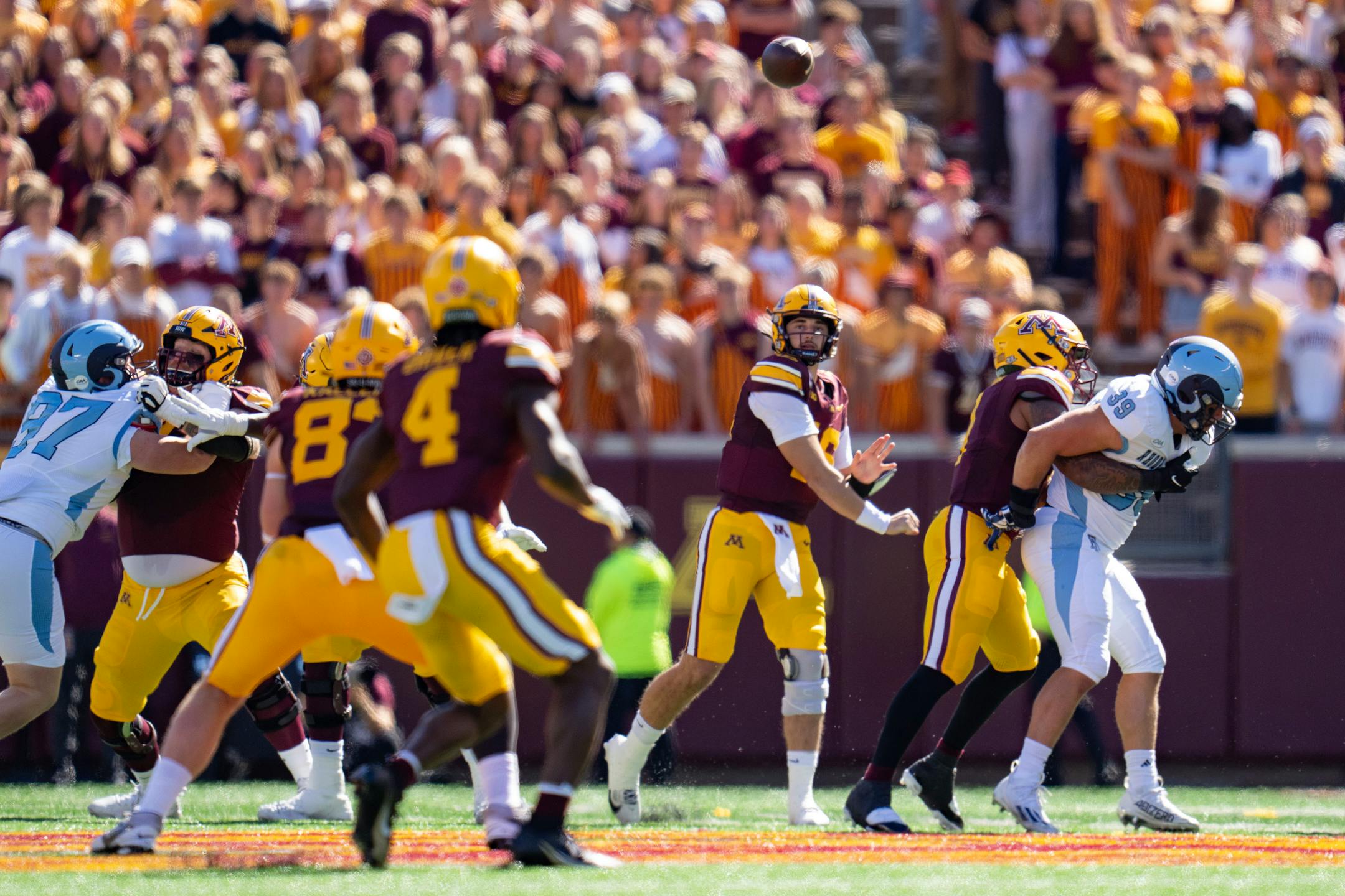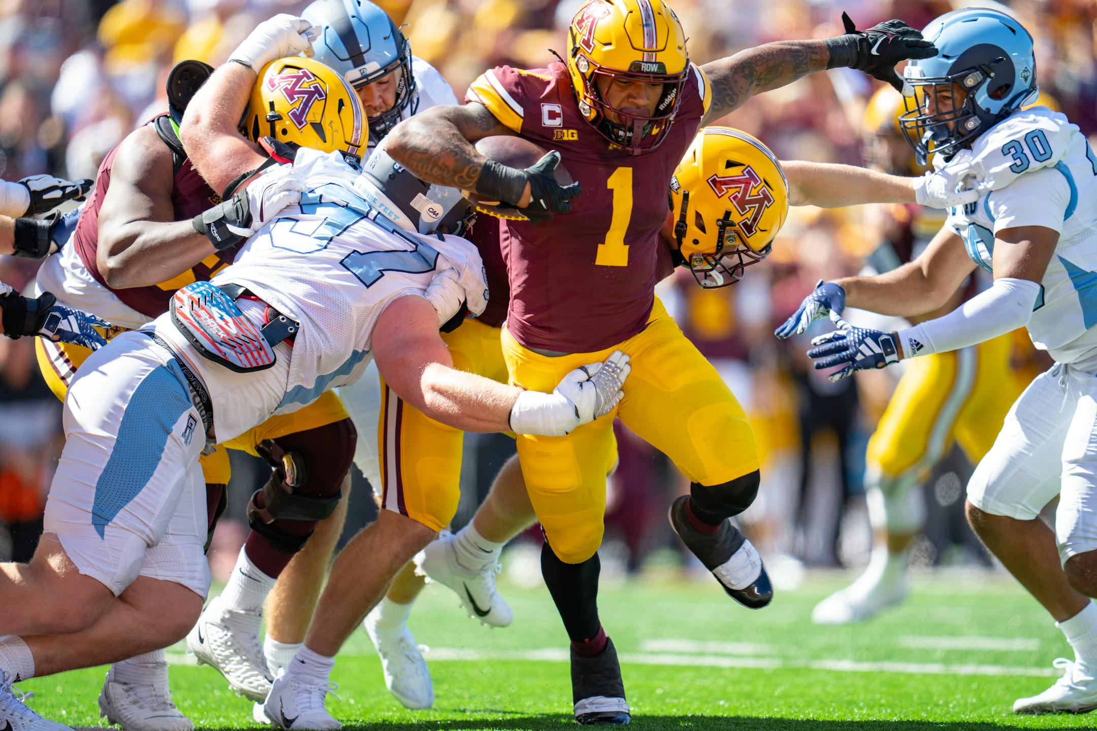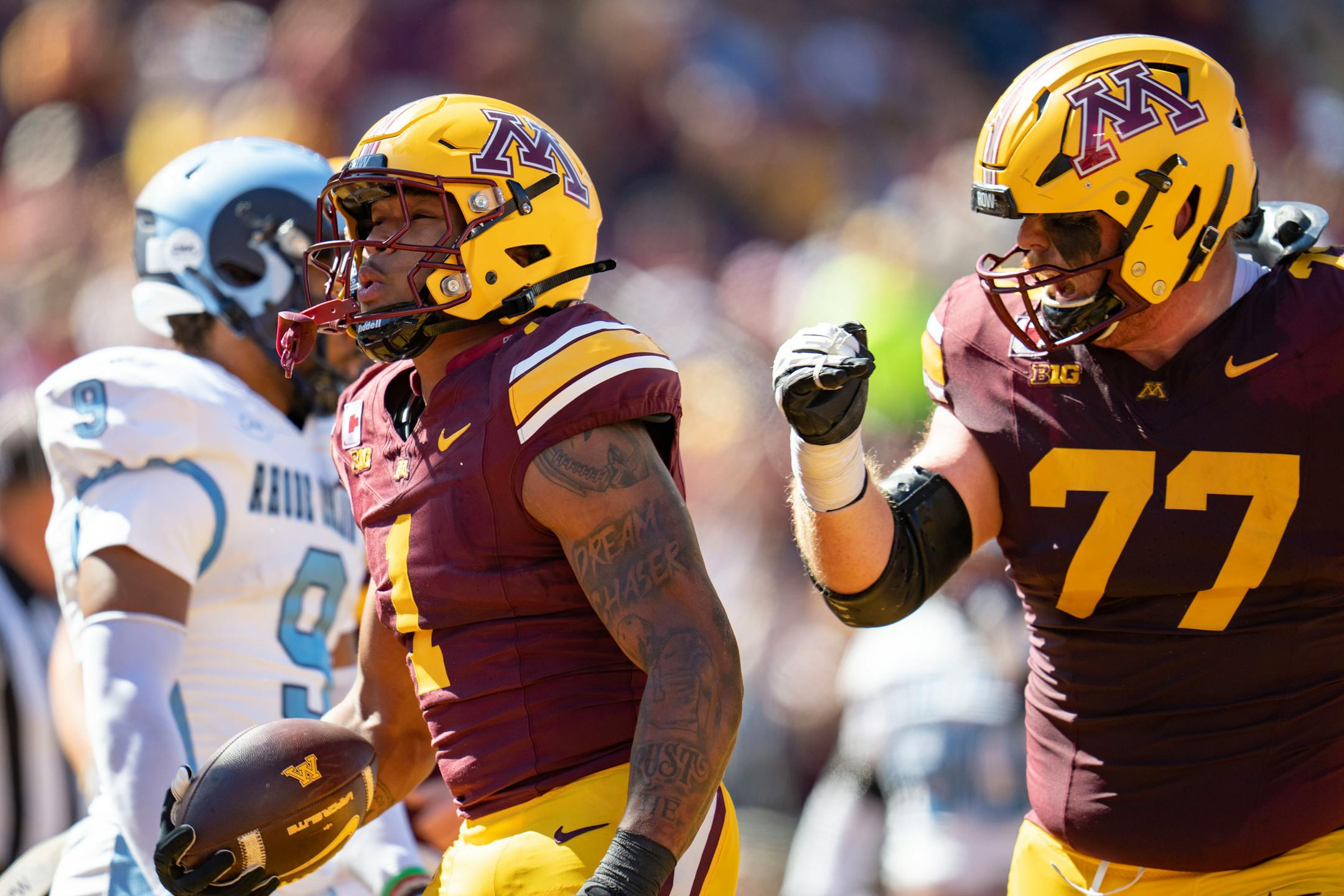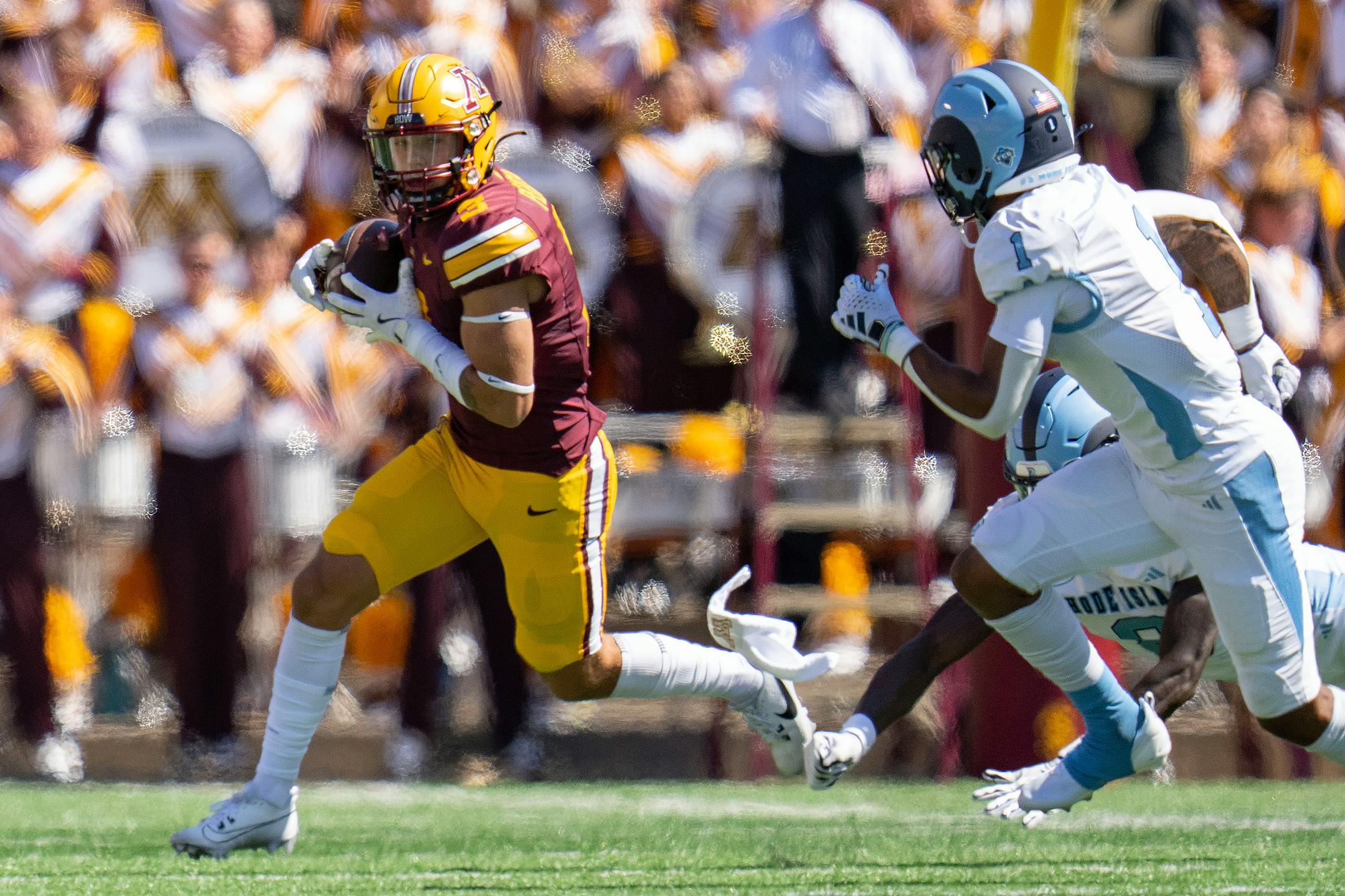 After a frustrating finish in last week’s two-point loss against North Carolina, the Gophers got their first victory of the 2024 season in blowout fashion 48-0 Saturday against Rhode Island from the FCS at Huntington Bank Stadium.