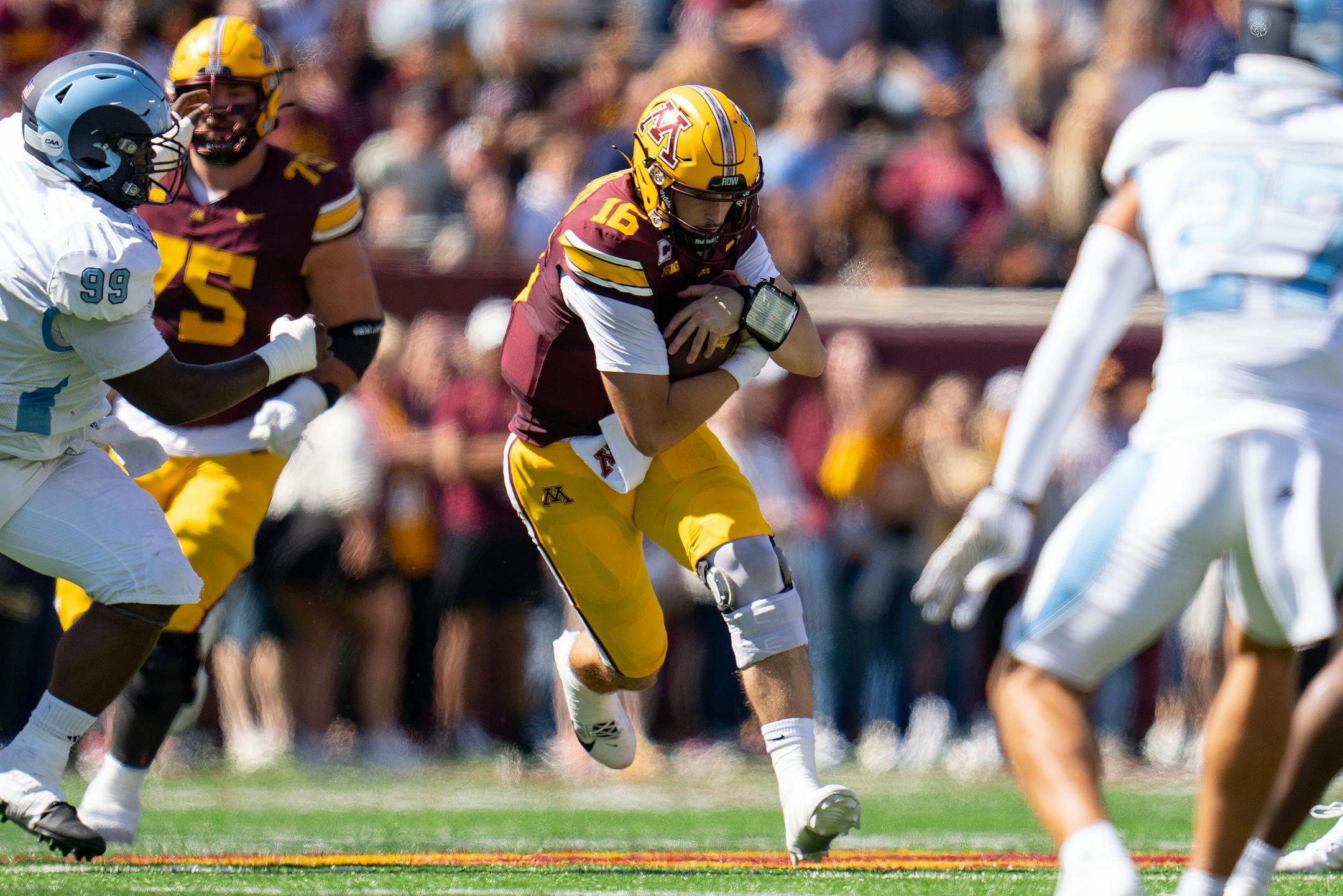 Brosmer, a former FCS All-America at New Hampshire, really got into rhythm in the second quarter and threw for 155 of his 271 passing yards in the first half. His first two TD passes as a Gopher then came in the second half, most notably dropping a 29-yard bomb to Le’Meke Brockington for a 31-0 lead in the third quarter.