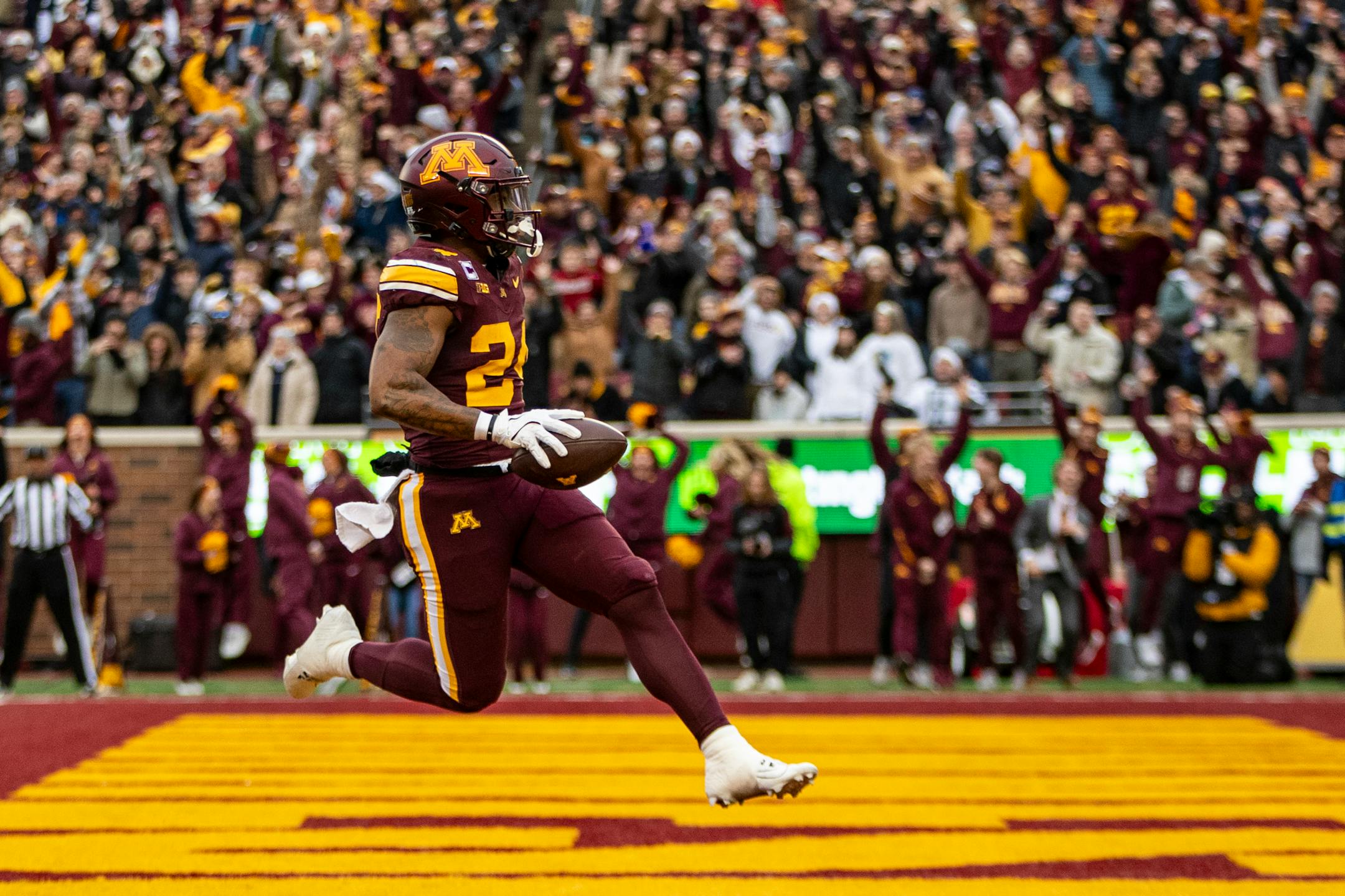 Saturday’s game against Penn State marked Senior Day for the Gophers football team, and 23 players participated in a pregame ceremony on the field at Huntington Bank Stadium. For 16 of the players, their eligibility will expire at the end of the season, and they were honored during the pregame walk. Seven others with eligibility remaining also were honored, though they can return for the 2025 season if they choose.