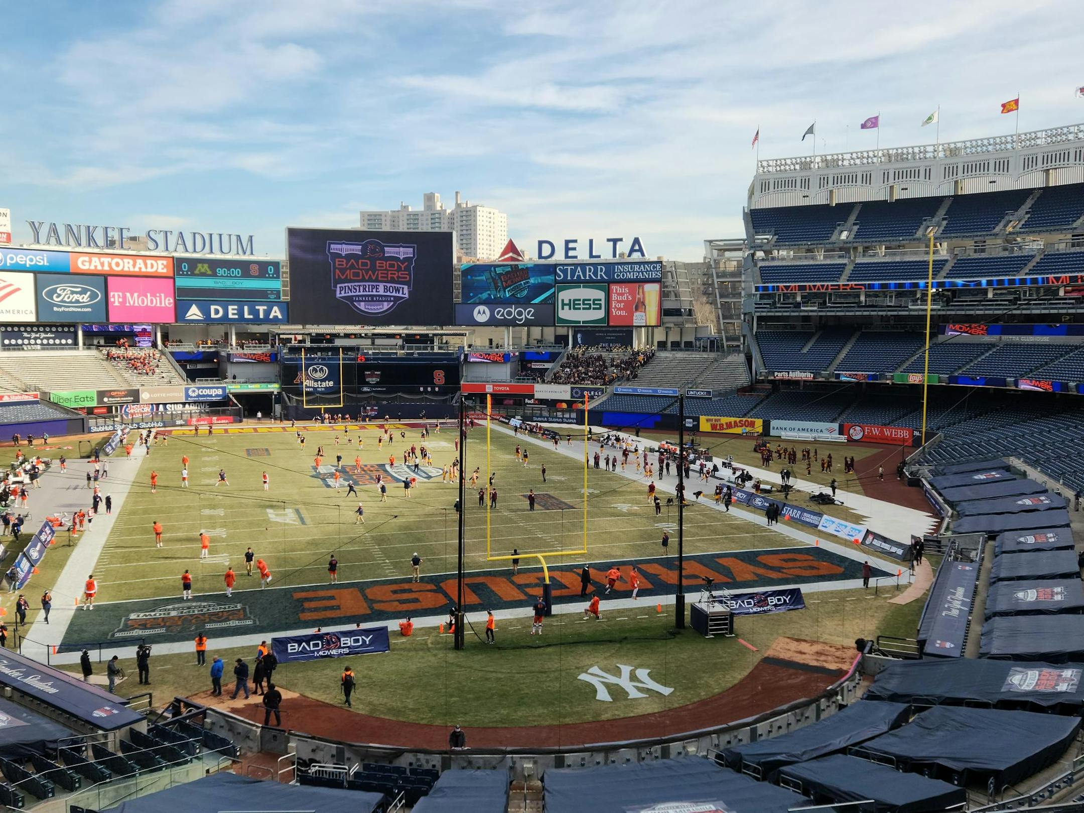 Good afternoon from Yankee Stadium, where the Gophers and Syracuse meet in the Pinstripe Bowl (1 p.m. Central, ESPN, 100.3-FM). It's a partly cloudy and pleasant day, with temperatures in the low-to-mid-40s and some swirling winds at the top of the stadium. The Gophers (8-4) will try to win their sixth consecutive bowl game and fourth in a row under coach P.J. Fleck, while the Orange (7-5) will try to finish strong after starting 6-0 and losing five games in a row.