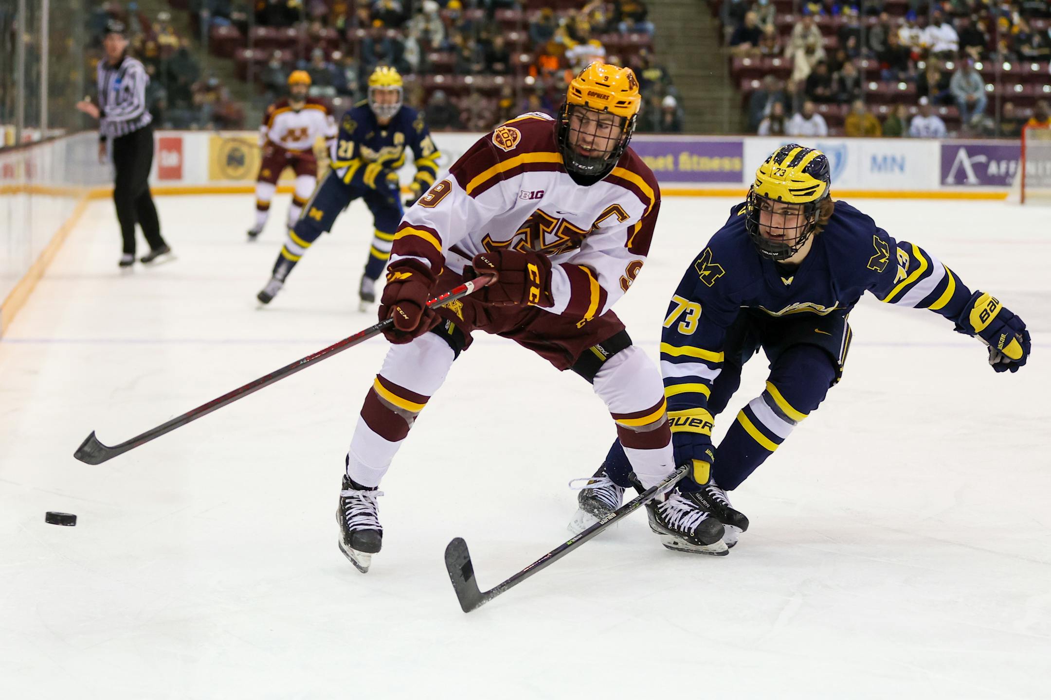 The Gophers are in third place in the Big Ten with 27 points, three more than the fourth-place Fighting Irish (17-7 overall). Michigan and Ohio State share the conference lead with 33 points each, but both the Wolverines and Buckeyes have played two more Big Ten games than Minnesota and Notre Dame.