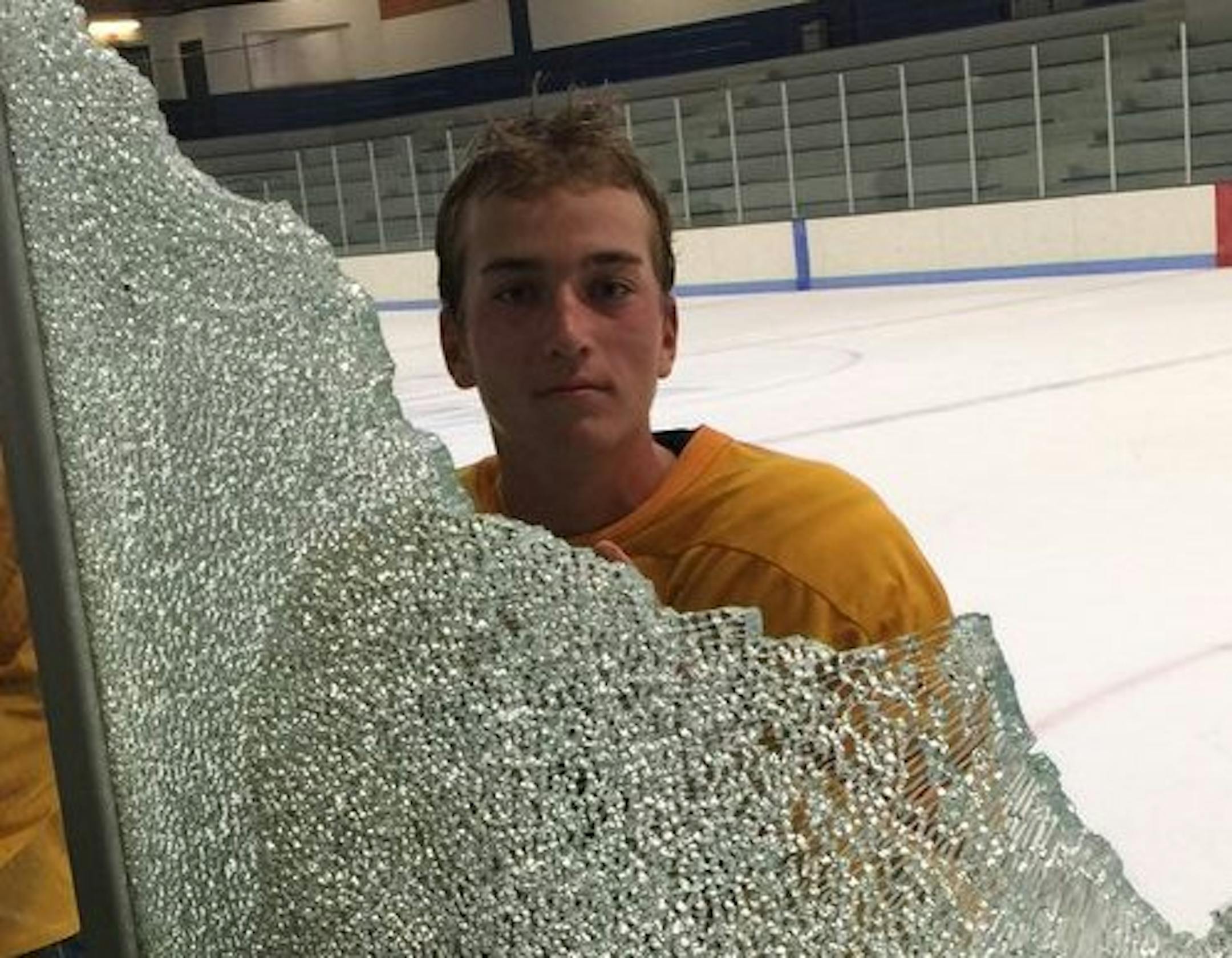 Fans of the movie "Happy Gilmore" likely remember the scene when Adam Sandler's character unloads his powerful slapshot and shatters the glass.