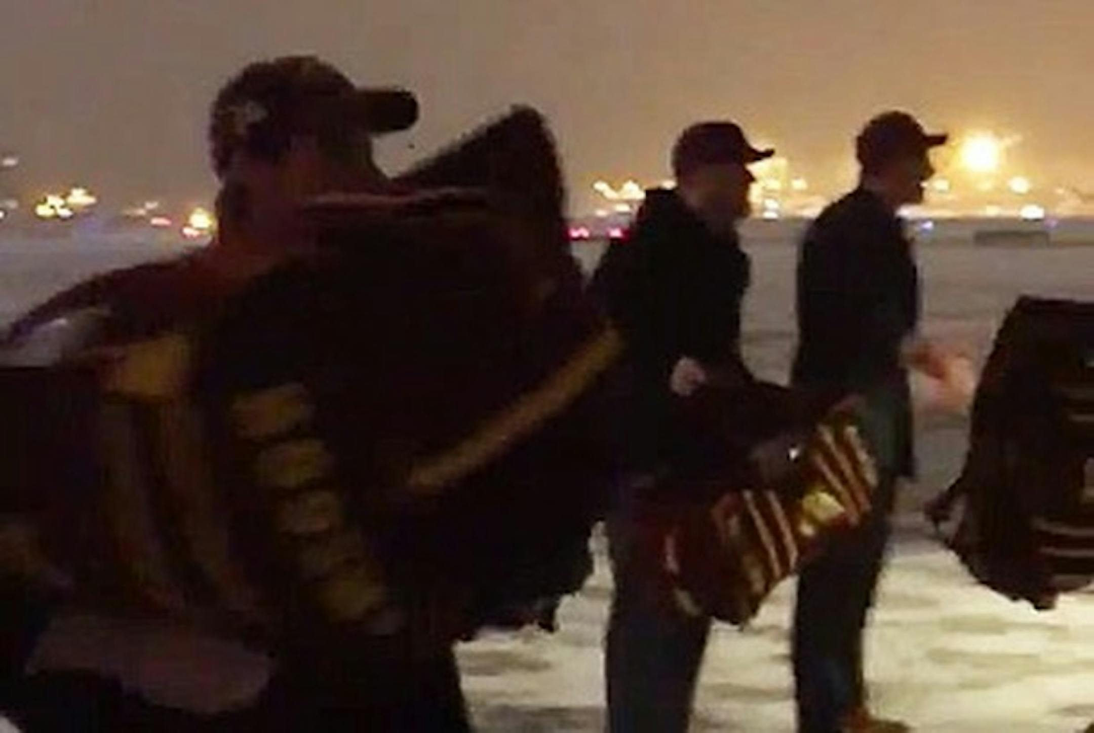 A video tweeted with the caption "Unloading the plane like a well-oiled machine" shows players (most likely only underclassmen) lined up passing bags from the airplane to the bus. One player can be heard calling the bags "heavy," which by the looks of it they would be way over the commercial airline 50-pound limit.